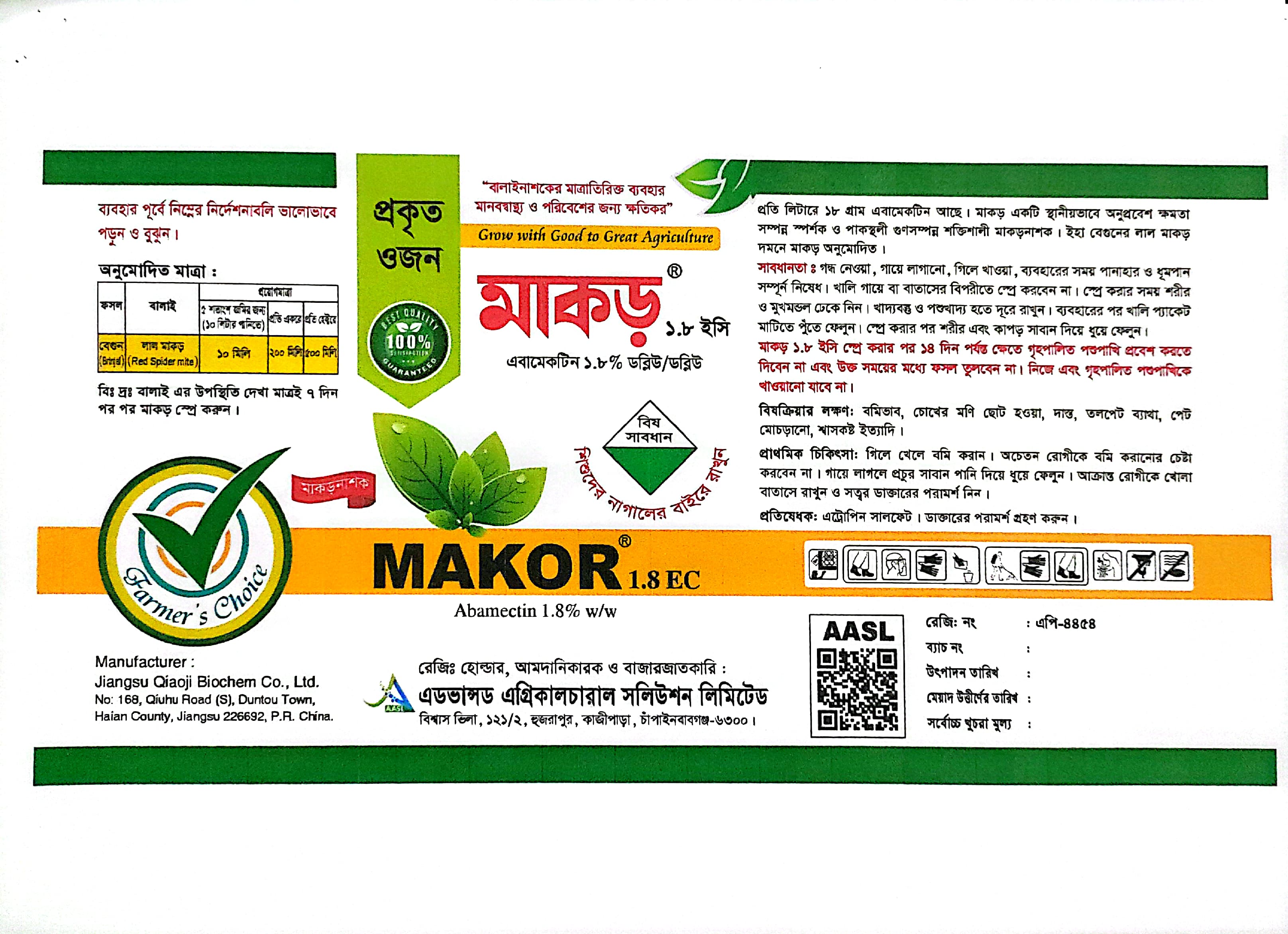 উদ্ভিদ সংরক্ষণ উইং, কৃষি সম্প্রসারণ অধিদপ্তর, খামারবাড়ি, ঢাকা কর্তৃক অনুমোদিত