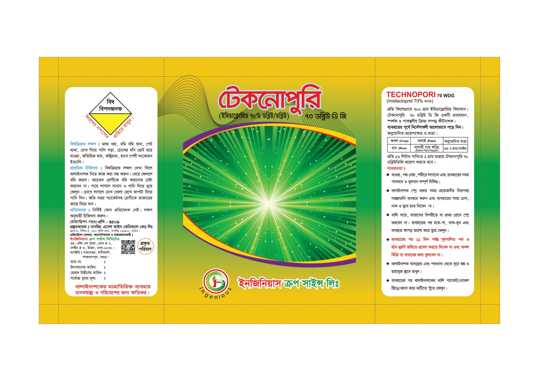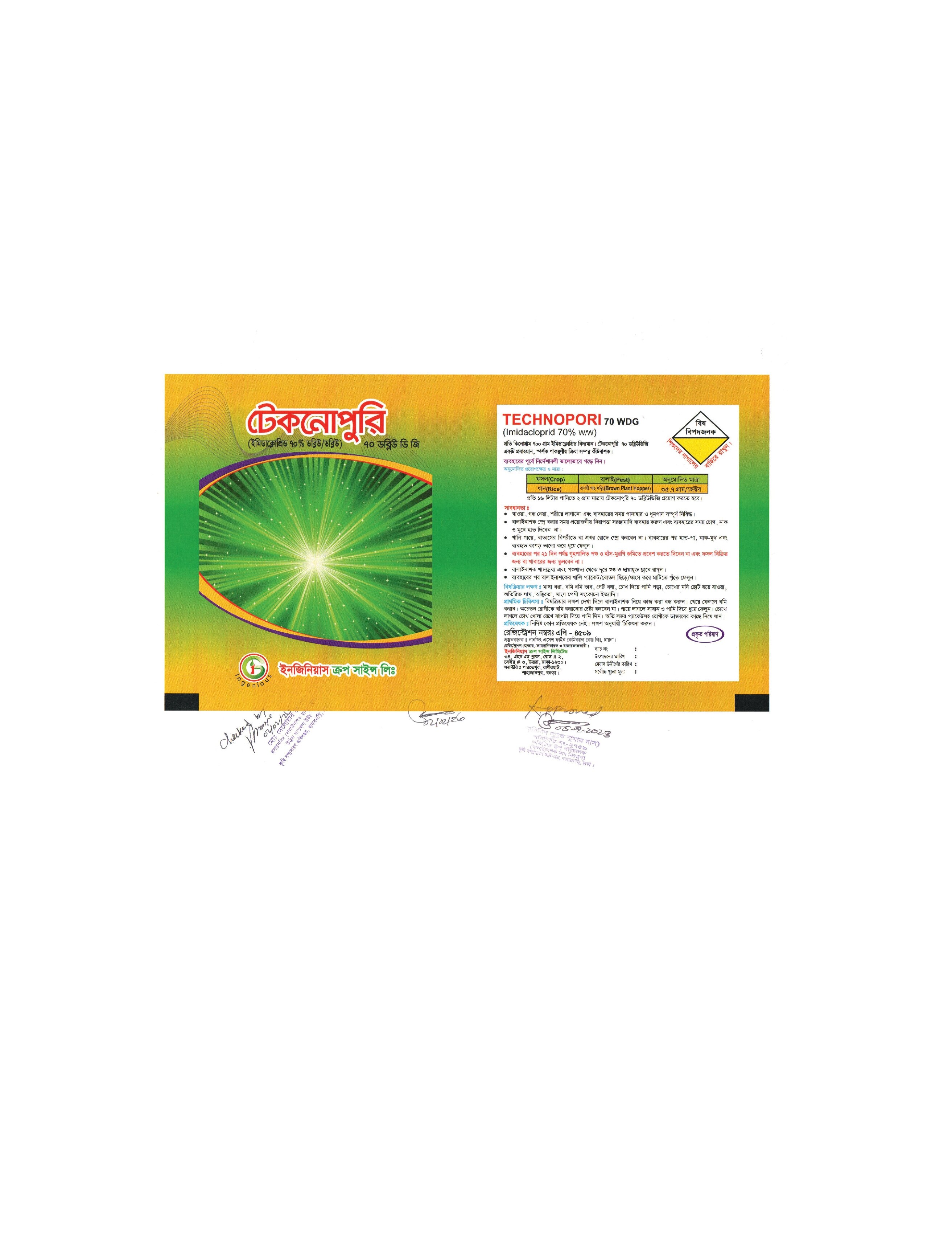 ট্রান্সলেমিনার কার্যসম্পন্ন প্রবাহমান ,স্পর্শক ও পাকস্থলীয় ক্রিয়া সম্পন্ন কীটনাশক যা দ্রুত গাছের দ্বারা শোষিত হয়, অতঃপর এক্রোপেটাল মুভমেন্টের মাধ্যমে ছড়িয়ে পরে। টেকনোপুরি নেমাটোড দমনে অত্যন্ত কার্যকর। এছাড়া সবজির জাবপোকা, সাদা মাছি, হপার, বিছাপোকা দমনে অত্যন্ত কার্যকর।