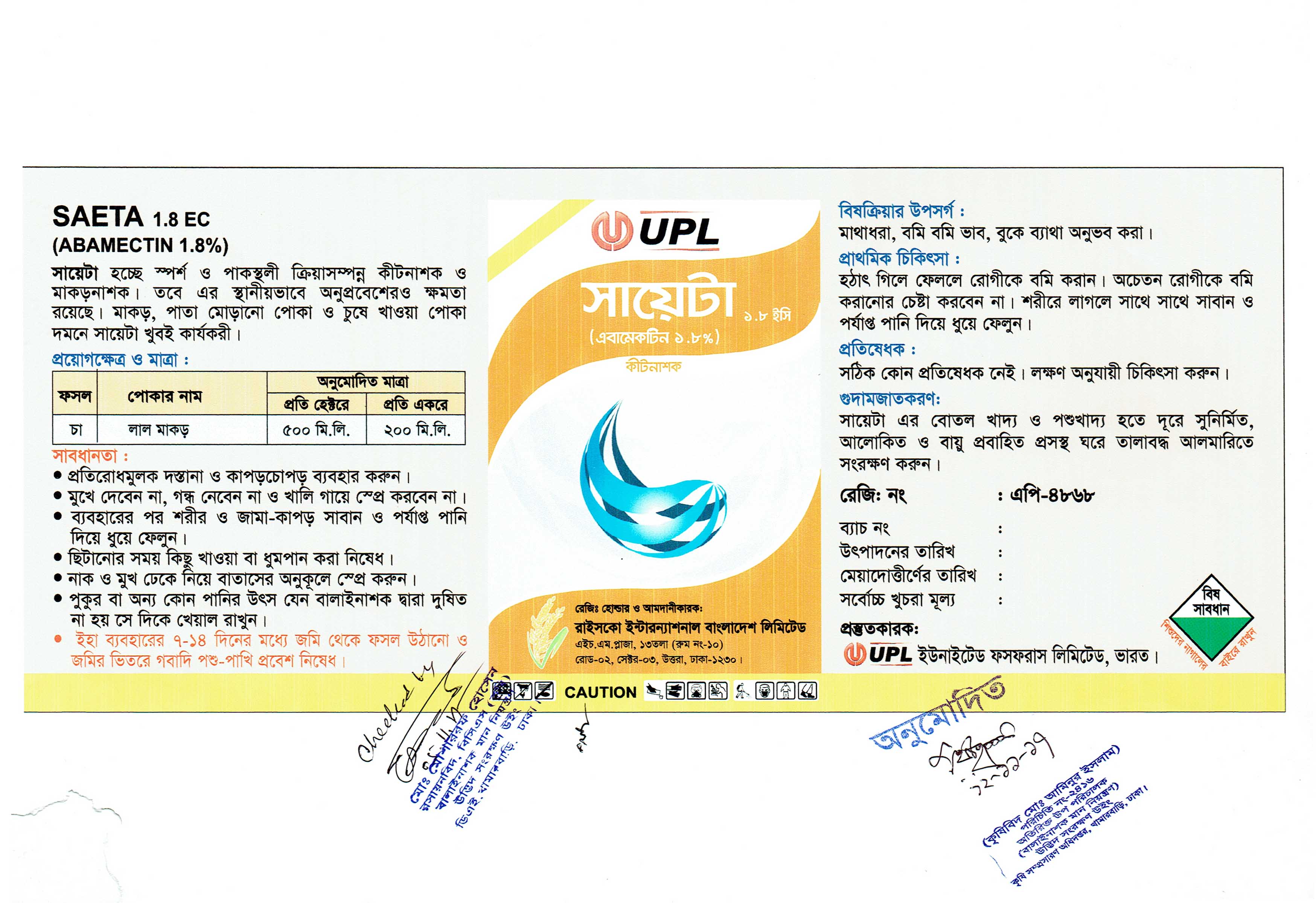 প্রতি হেক্টরে ৫০০ মিলি অথবা প্রতি একরে ২০০ মিলি অনুপাতে ব্যবহার করতে হবে।