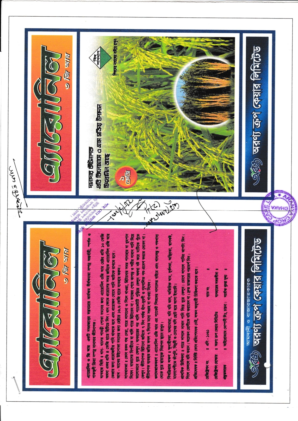এ্যারোনিল 3 জি আর প্রয়োগের পর কমপক্ষে ৭ দিন পর্যন্ত ফসল খাওয়া বা বিক্রয়ের জন্য তুলবেন না।
