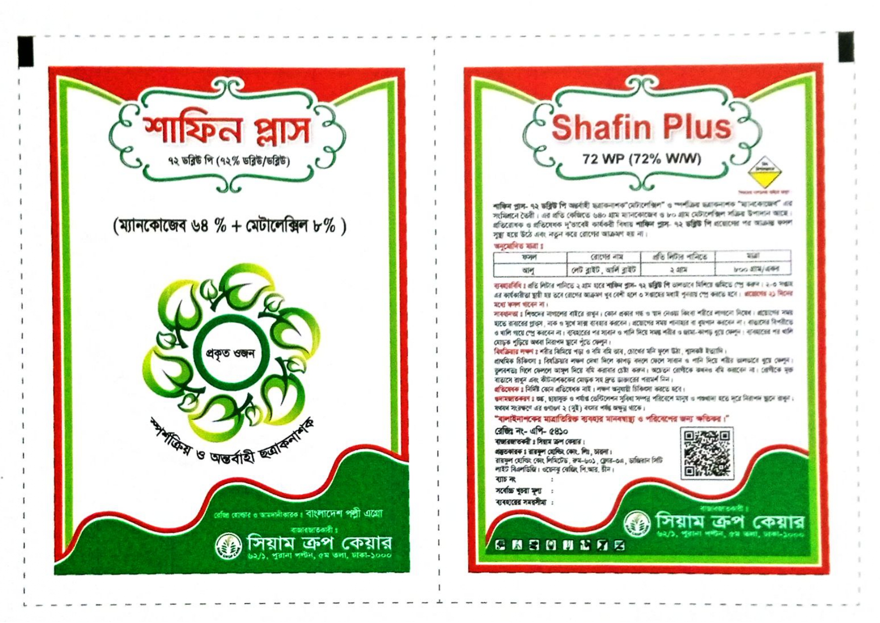 উদ্ভিদ সংরক্ষণ উইং, কৃষি সম্প্রসারণ অধিদপ্তর, খামারবাড়ি, ঢাকা কর্তৃক অনুমোদিত