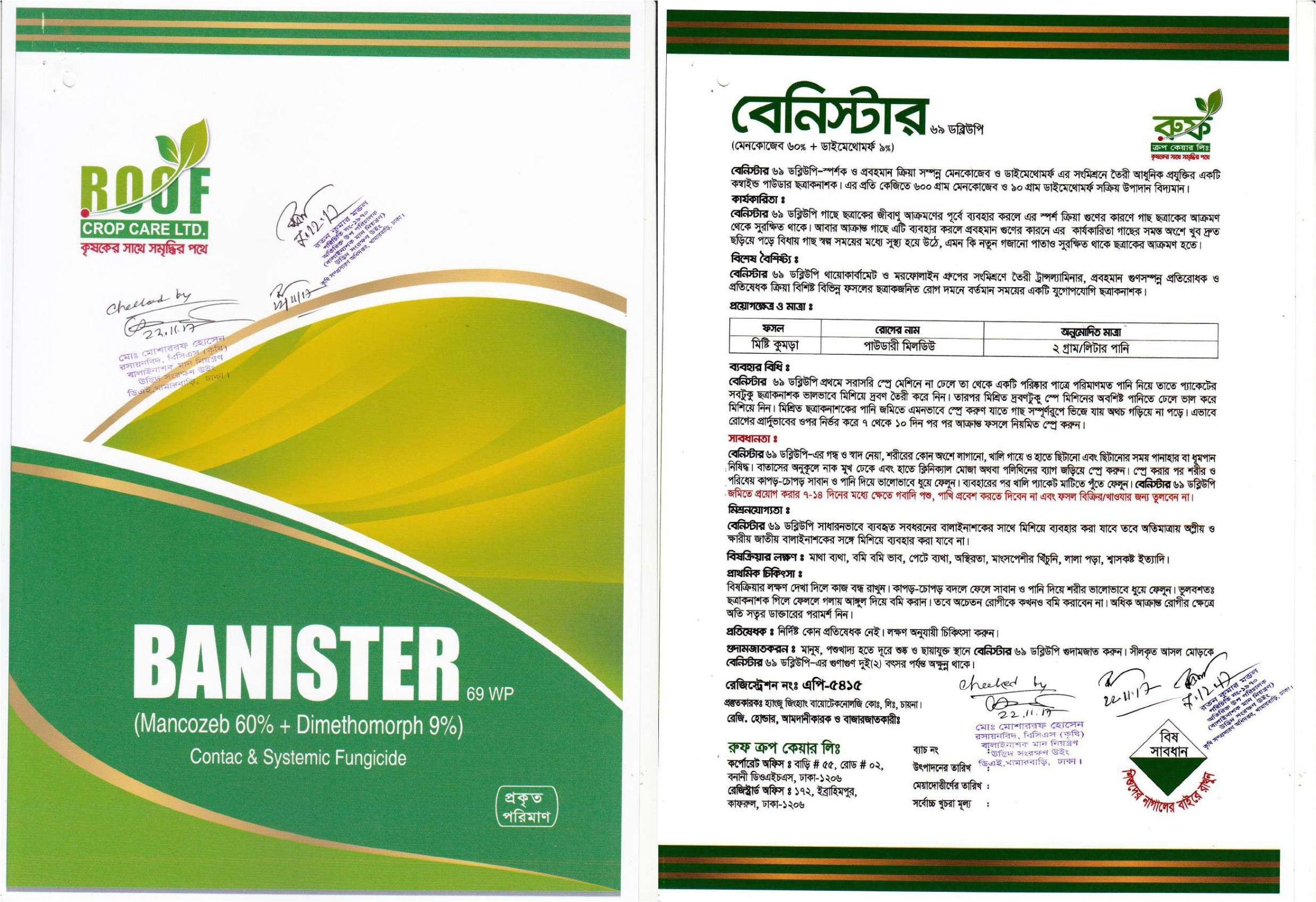 বেনিস্টার ৬৯ ডব্লিউপি প্রথমে সরাসরি স্প্রে মেশিনে না ঢেলে তা থেকে একটি পরিষ্কার পাত্রে পরিমাণমত পানি নিয়ে তাতে প্যাকেটের সবটুকু ছত্রাকনাশক ভালভাবে মিশিয়ে দ্রবণ তৈরী করে নিন। তারপর মিশ্রিত দ্রবণটুকু স্পে মিশিনের অবশিষ্ট পানিতে ঢেলে ভাল করে মিশিয়ে নিন। মিশ্রিত ছত্রাকনাশকের পানি জমিতে এমনভাবে স্প্রে করুণ যাতে গাছ সম্পূর্ণরুপে ভিজে যায় অথচ গড়িয়ে না পড়ে। এভাবে রোগের প্রার্দুভাবের ওপর নির্ভর করে ৭ থেকে ১০ দিন পর পর আক্রান্ত ফসলে নিয়মিত স্প্রে করুন।