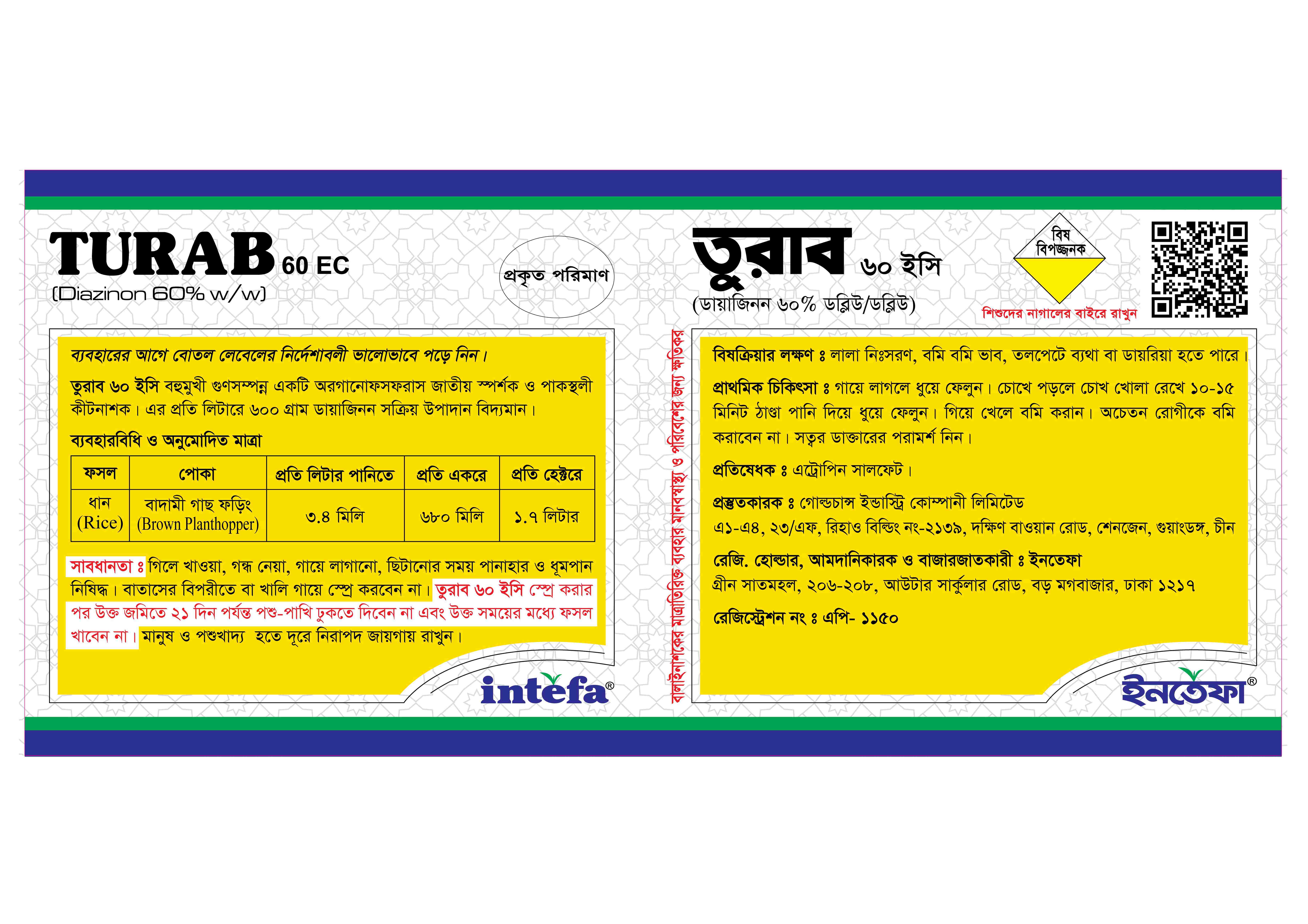 তুরাব ৬০ ইসি বহুমুখী গুণসম্পন্ন একটি অরগানোফসফরাস জাতীয় স্পর্শক ও পাকস্থলী কীটনাশক। এর প্রতি লিটারে ৬০০ গ্রাম ডায়াজিনন সক্রিয় উপাদান বিদ্যমান।