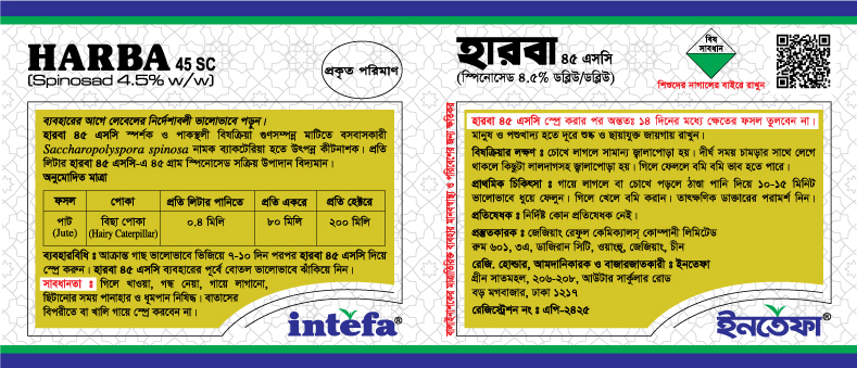 হারবা ৪৫ এসসি স্পর্শক ও পাকস্থলী বিষক্রিয়া গুণসম্পন্ন মাটিতে বসবাসকারী Saccharopolyspora spinosa নামক ব্যাকটেরিয়া হতে উৎপন্ন কীটনাশক। প্রতি লিটার হারবা ৪৫ এসসি-এ ৪৫ গ্রাম স্পিনোসেড সক্রিয় উপাদান বিদ্যমান।