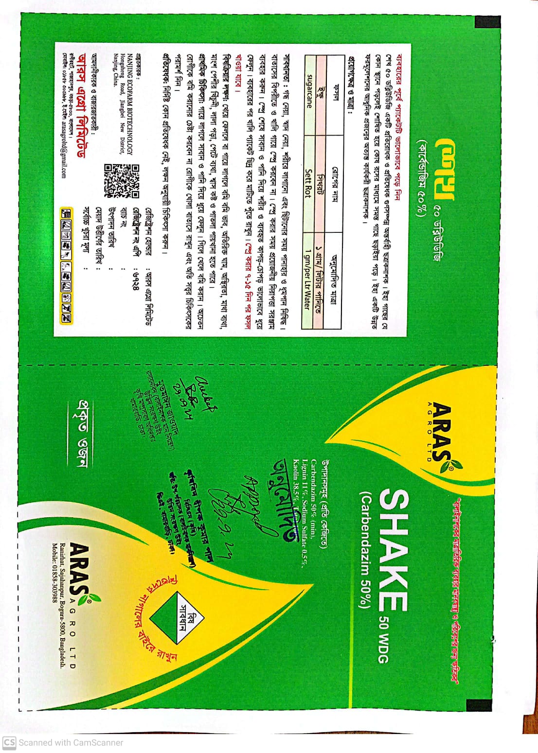 shake 50 wdg (carbendazim 50% ) can be used in crop field of rice,tea, potato and pepper etc.