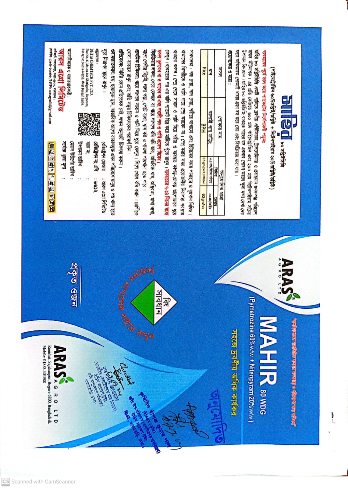 Mahir 80 wdg (pymetrozine 60%+ nitenpyram 20%) can be used in crop field of rice.