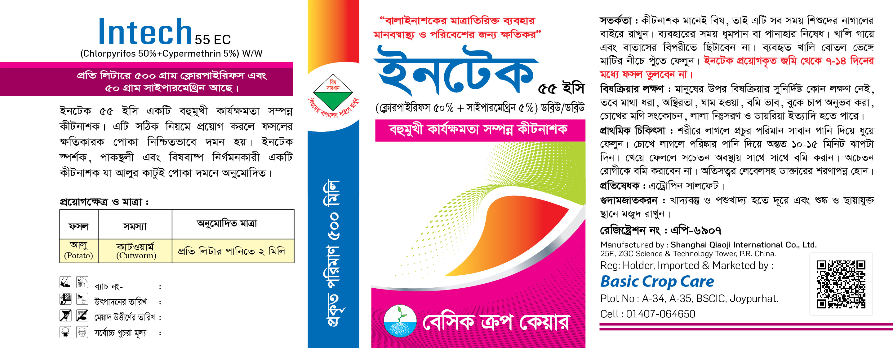 ইনটেক ৫৫ ইসি একটি বহুমুখী কার্যক্ষমতা সম্পন্ন, স্পর্শক, পাকস্থলী এবং বিষবাষ্প নির্গমনকারী কীটনাশক।