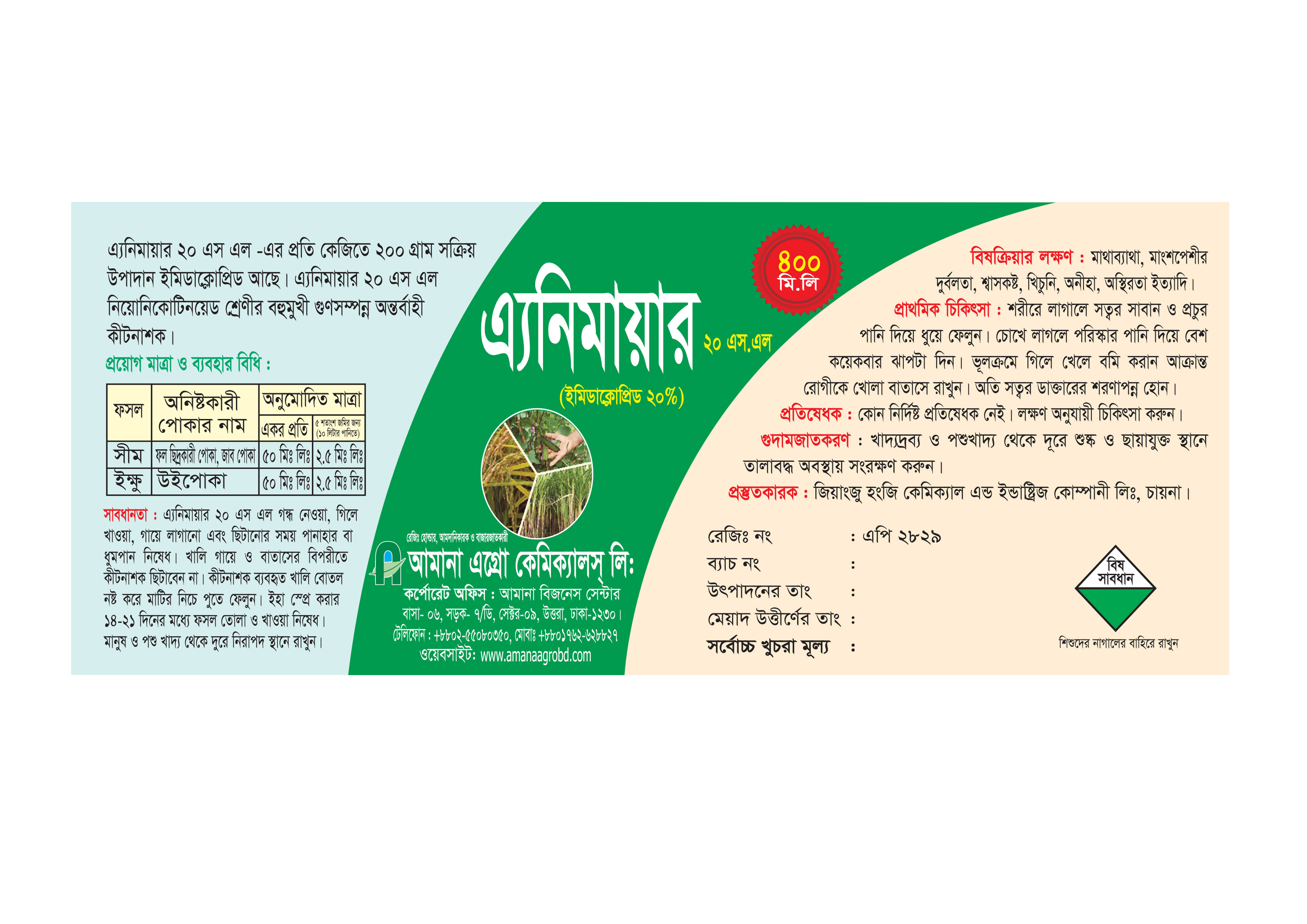 উদ্ভিদ সংরক্ষণ উইং, কৃষি সম্প্রসারণ অধিদপ্তর, খামারবাড়ি, ঢাকা কর্তৃক অনুমোদিত