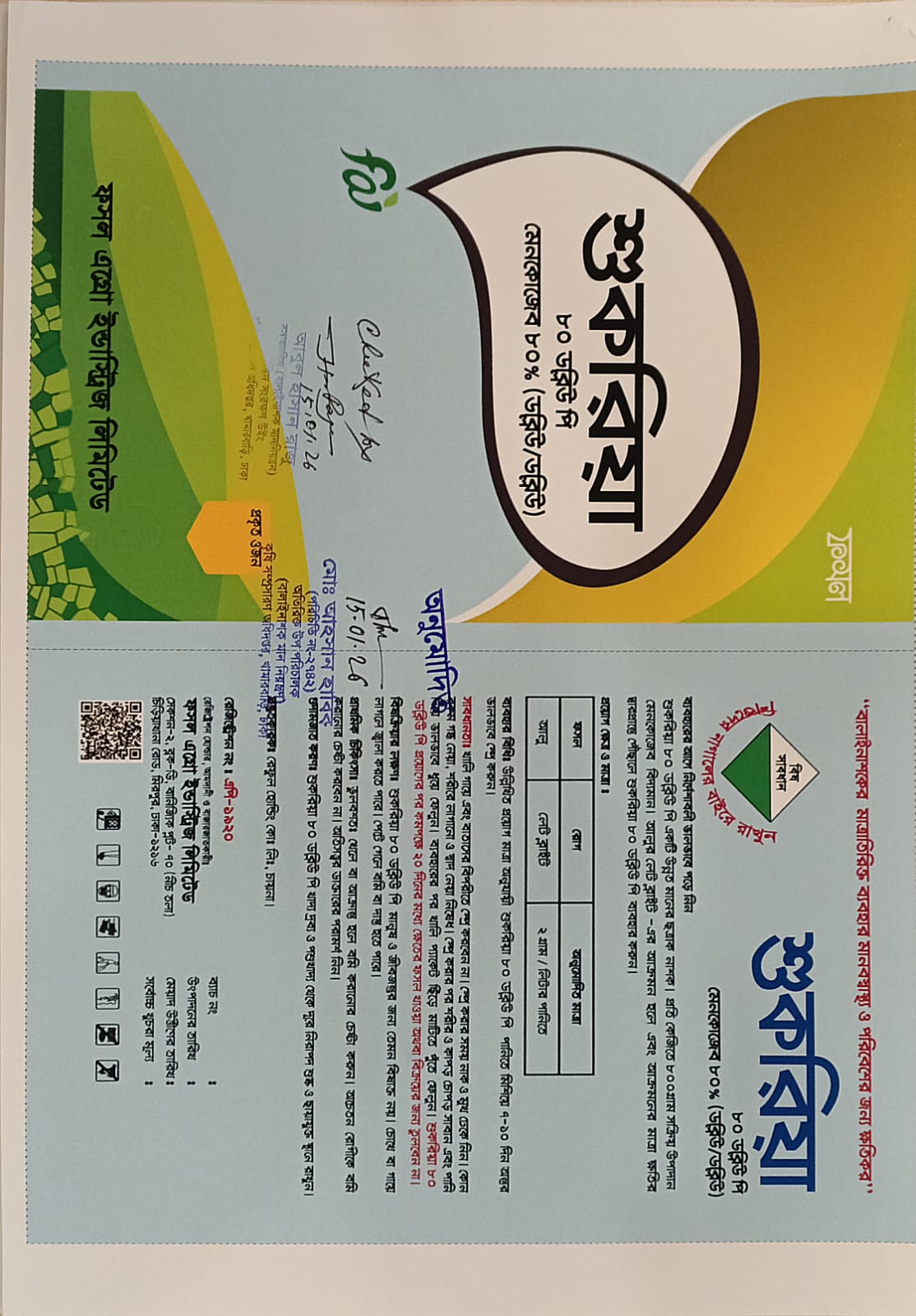 লেবেলে বর্ণিত ফসলের বালাই দমনে কার্যকরী ও অনুমোদিত।