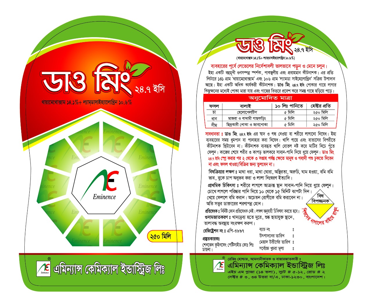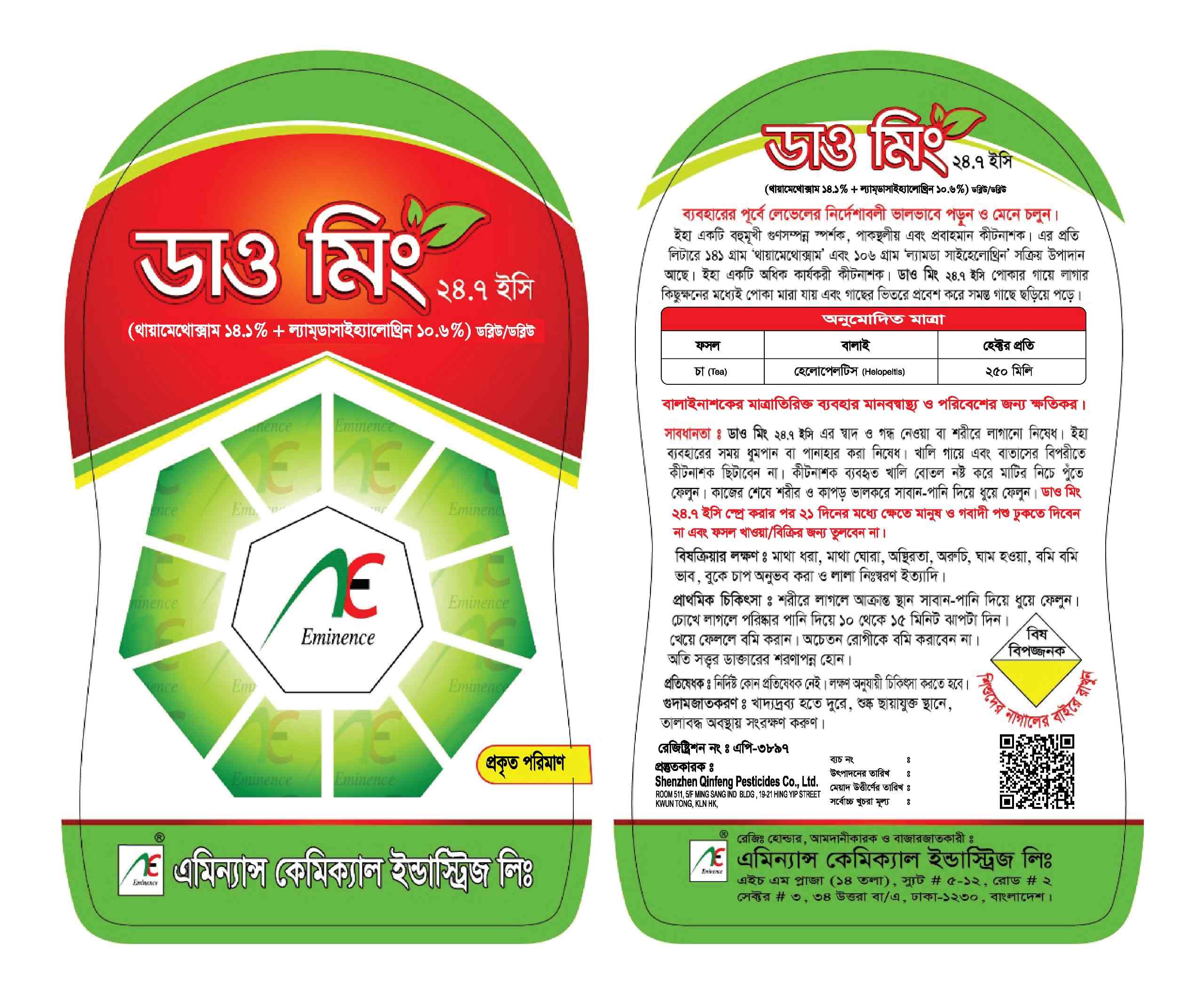ইহা চায়ের হেলোপেলটিস দমনে হেক্টর প্রতি 250 মিলি পানির সাথে মিশিয়ে ভালোভাবে স্প্রে করতে হবে।