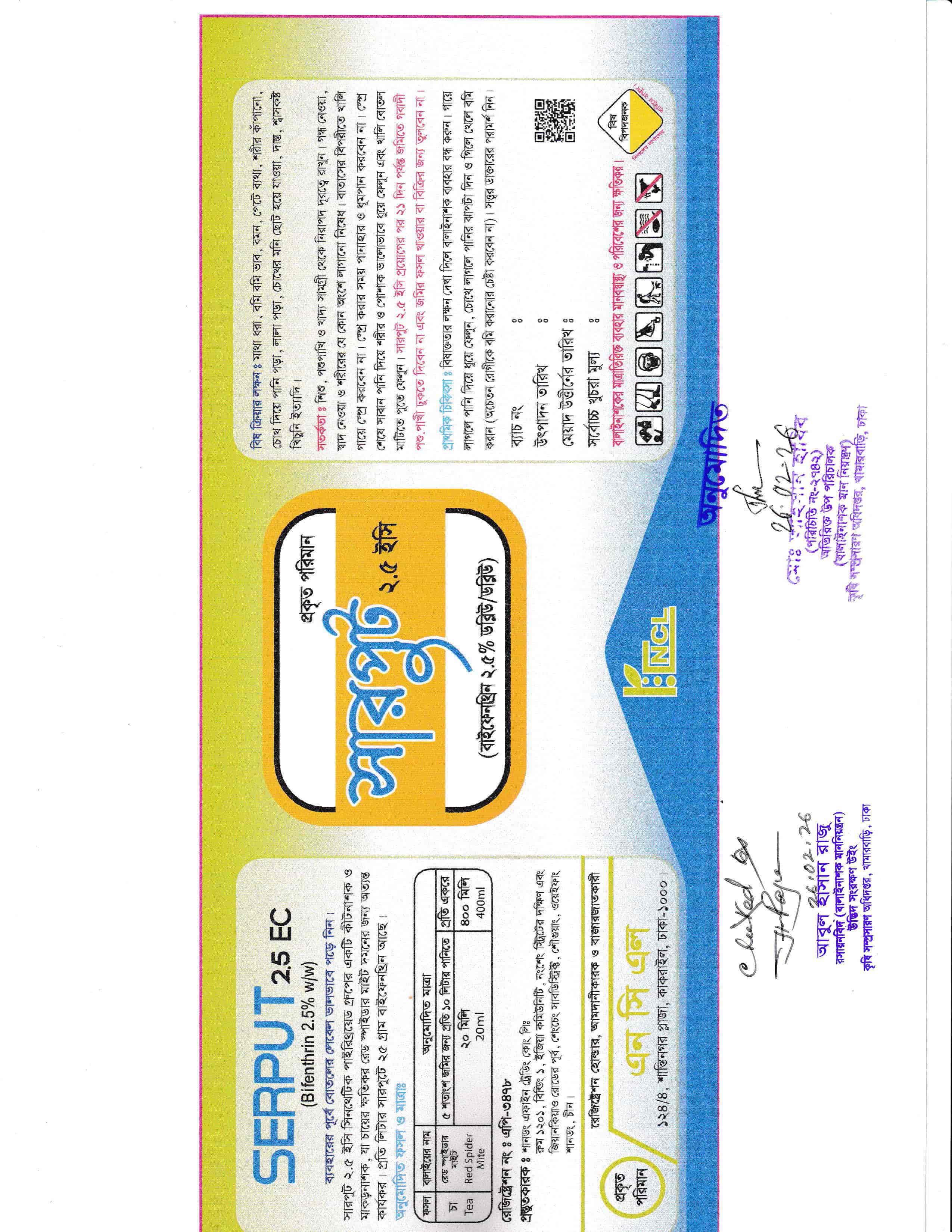 উদ্ভিদ সংরক্ষণ উইং, কৃষি সম্প্রসারণ অধিদপ্তর, খামারবাড়ি, ঢাকা কর্তৃক অনুমোদিত
