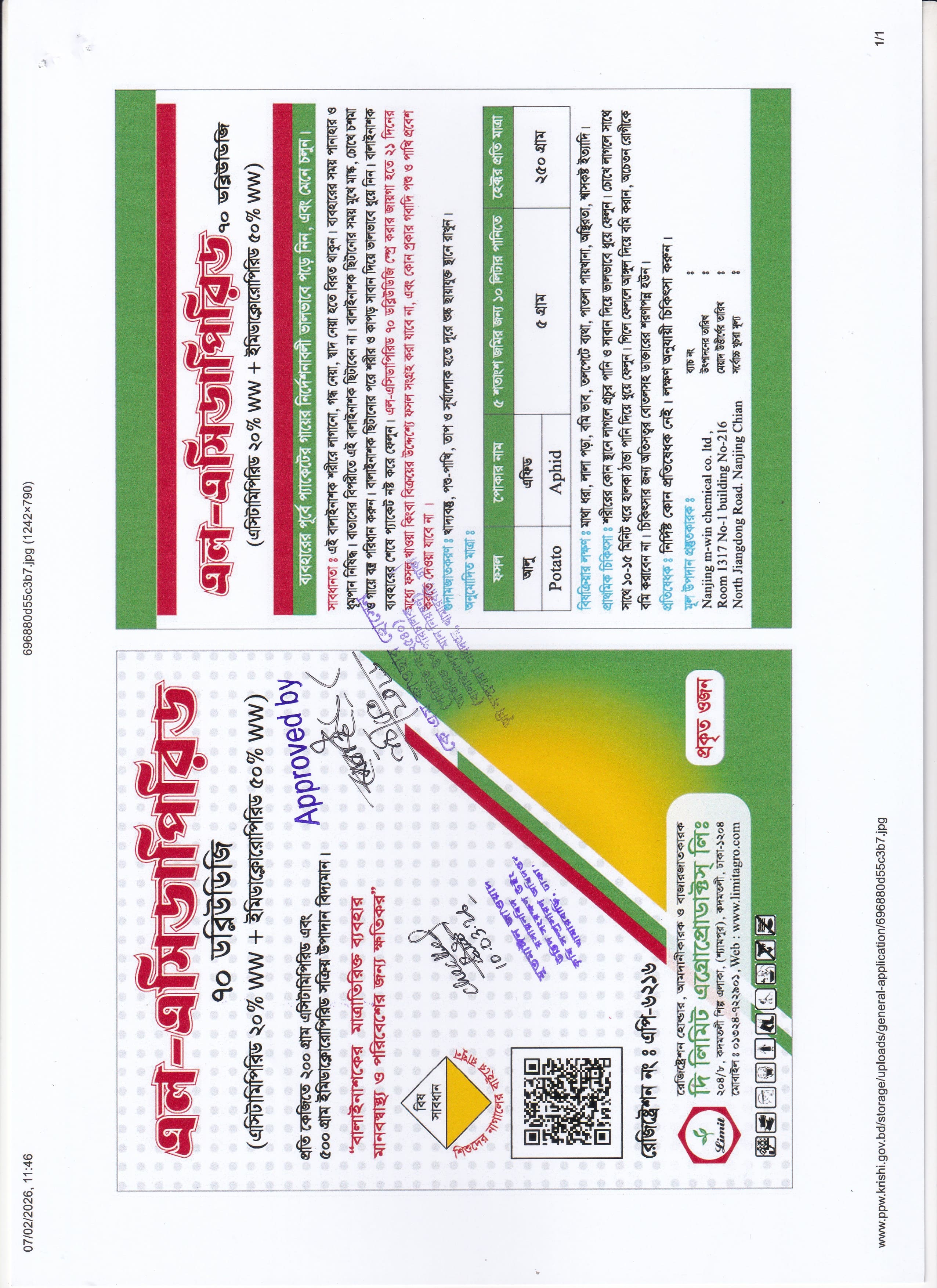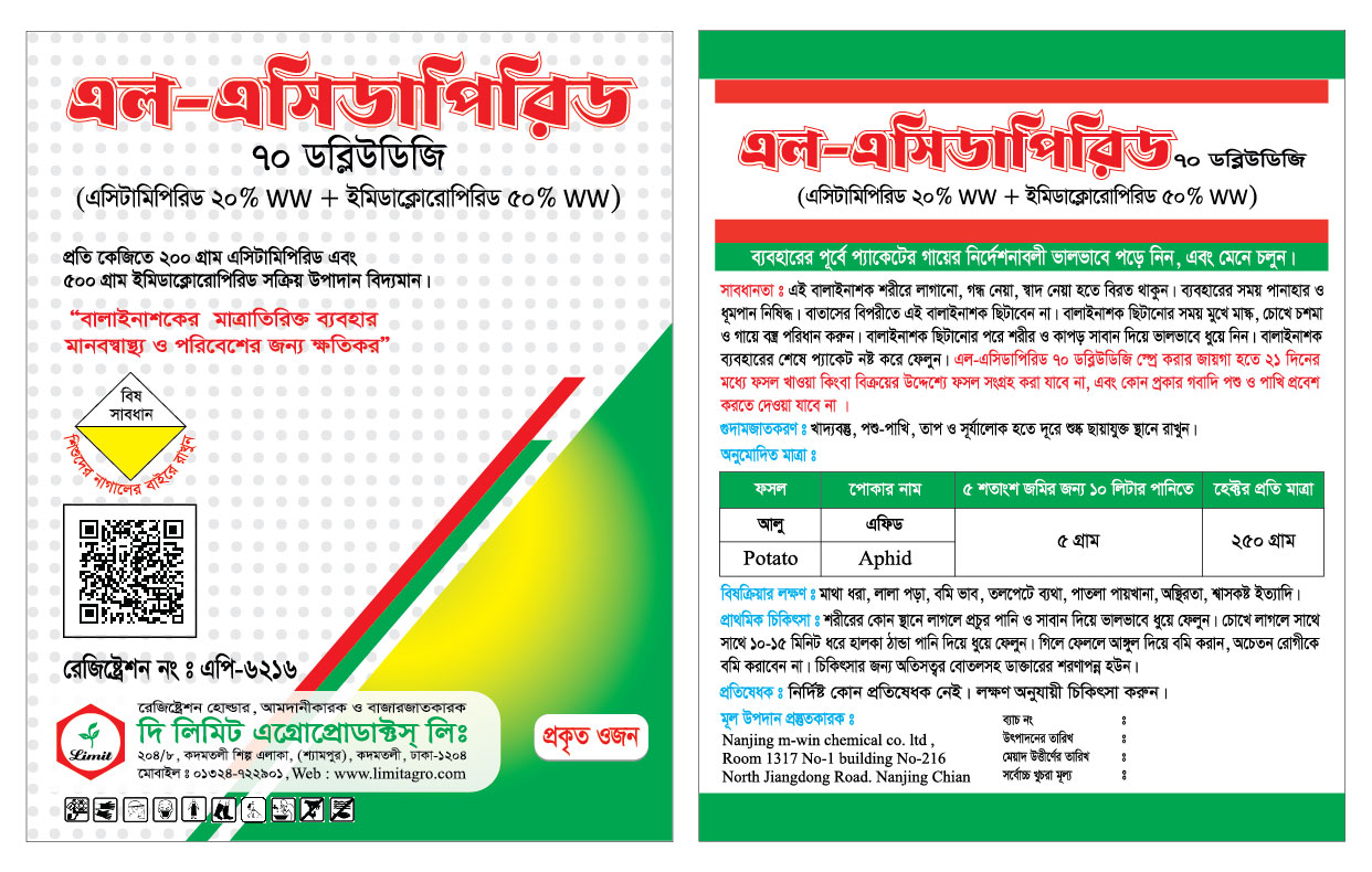 এল-এসিডাপিরিড প্রতি কেজিতে ২০০ গ্রাম এসিটামিপিড এবং ৫০০ গ্রাম ইমিডাক্লোরোপিরিড স্বয়ংক্রিয় উপাদান বিদ্যমান। ইহা আলু চাষে আলুর এফিড নামক পোকা দমনে অধিক কার্যকরী।