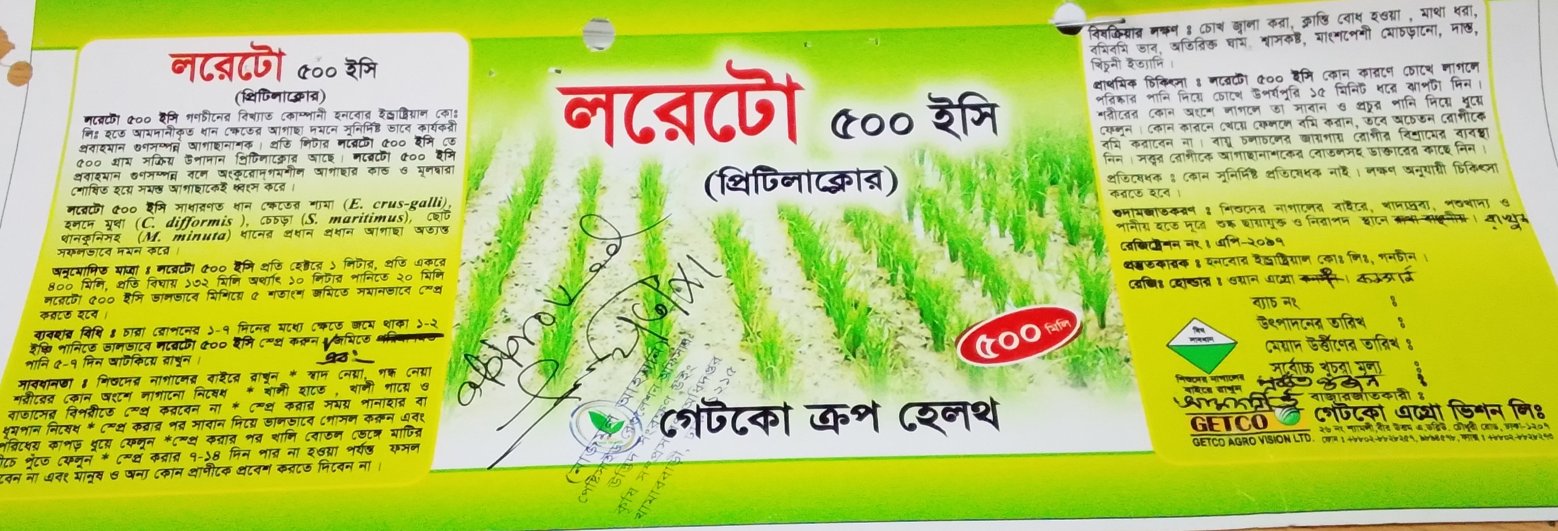 1. Within 1-7 days after transplanting of rice 2. Must keep water 1-2 inches of water 3. Dose-20 ml of Loretto in 10 lit water