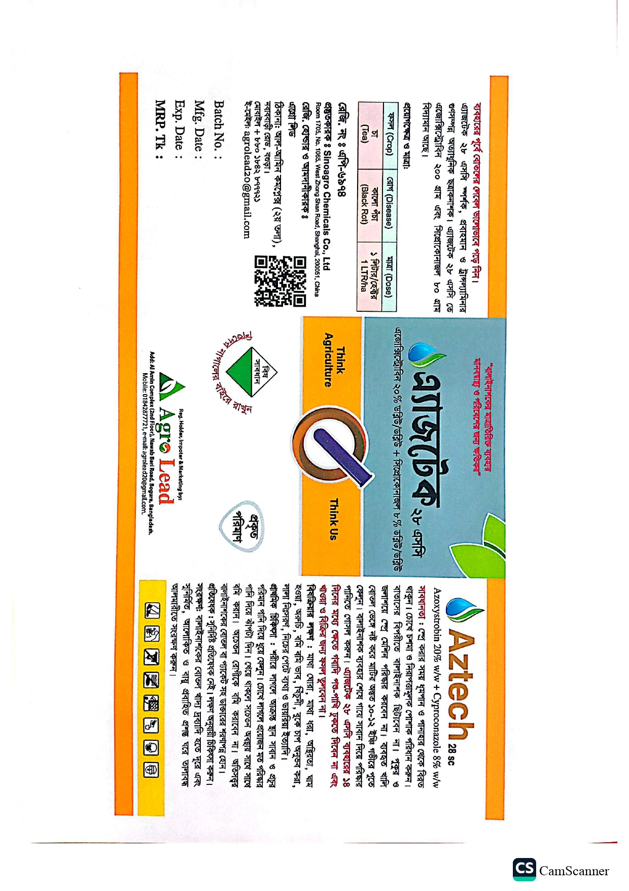 এ্যাজটেক ২৮ এসসি স্পর্শক,প্রবাহমান ও ট্রান্সল্যামিনার গুনসম্পন্ন অত্যাধুনিক ছত্রাকনাশক।