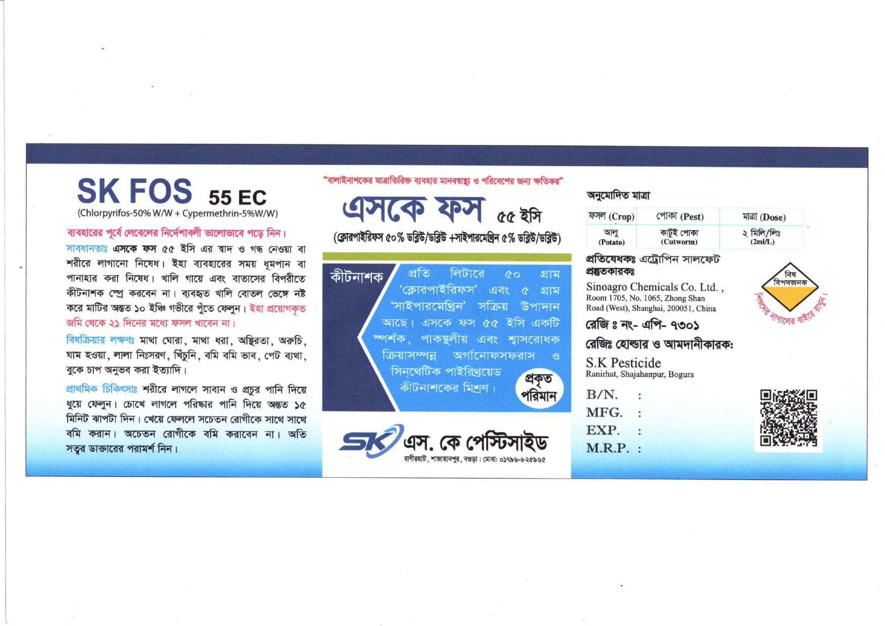 এস কে ফস ৫৫ ইসি একটি স্পর্শক, পাকস্থলীয় এবং শ্বাসরোধক ক্রিয়াসম্পন্ন অর্গানোফসফরাস ও সিনথেটিক পাইরিথ্রয়েড জাতীয় কীটনাশক ।