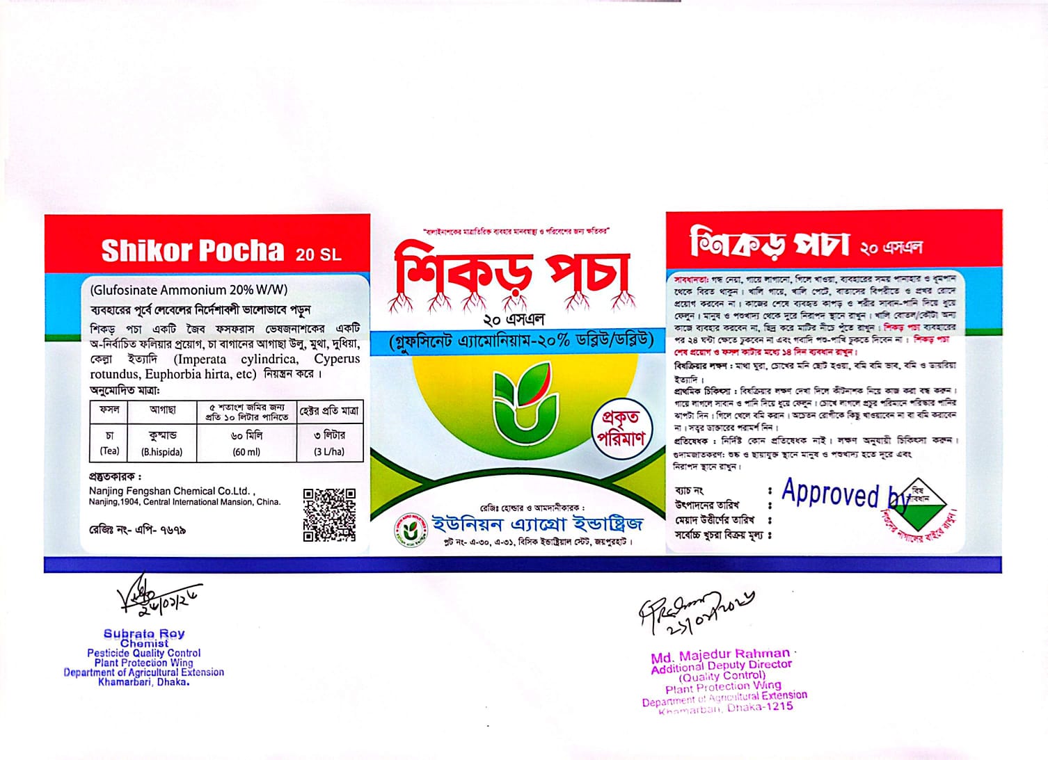 শিকড় পঁচা ২০ এসএল এমন একটি আগাছানাশক যা বিস্তৃত পরিসরে বাগড়াকোট ও কোগন ঘাস জাতীয় আগাছা দমন করে। প্রতি লিটারে ২০০ গ্রাম গ্লুফোসিনেট এ্যামোনিয়াম সক্রিয় উপাদান আছে।