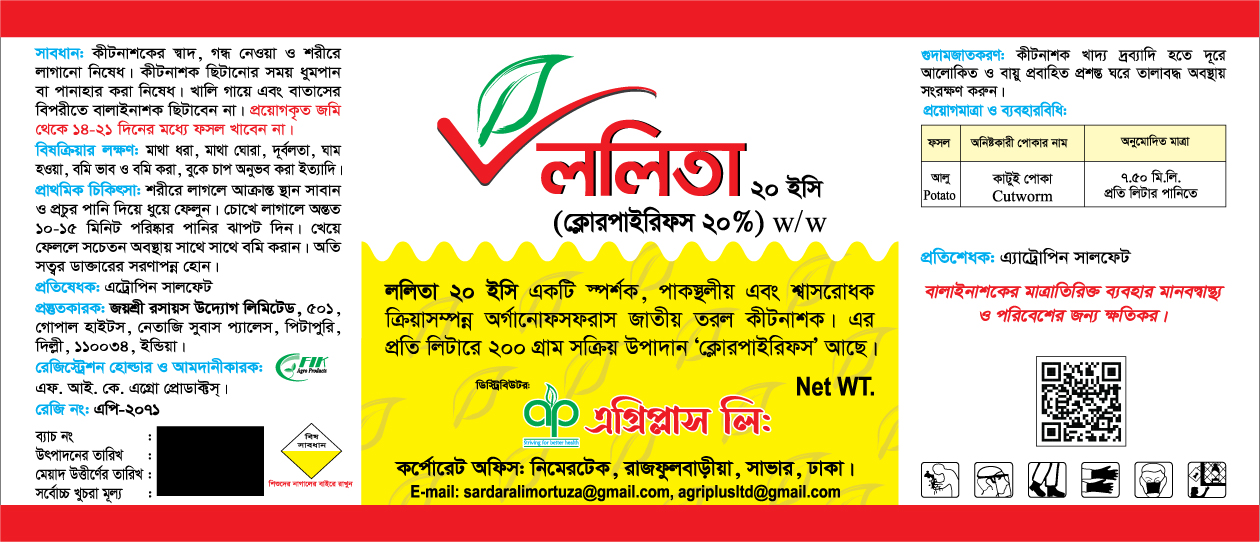 উদ্ভিদ সংরক্ষণ উইং, কৃষি সম্প্রসারণ অধিদপ্তর, খামারবাড়ি, ঢাকা কর্তৃক অনুমোদিত