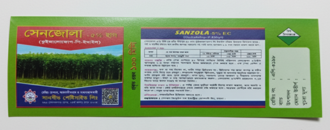 ১০ লিটার পানিতে ০৫ শতক জমির জন্য সেনজোলা-৫ ইসি ১৩ মিলি ভাল ভাবে মিশিয়ে স্প্রে করতে হবে।