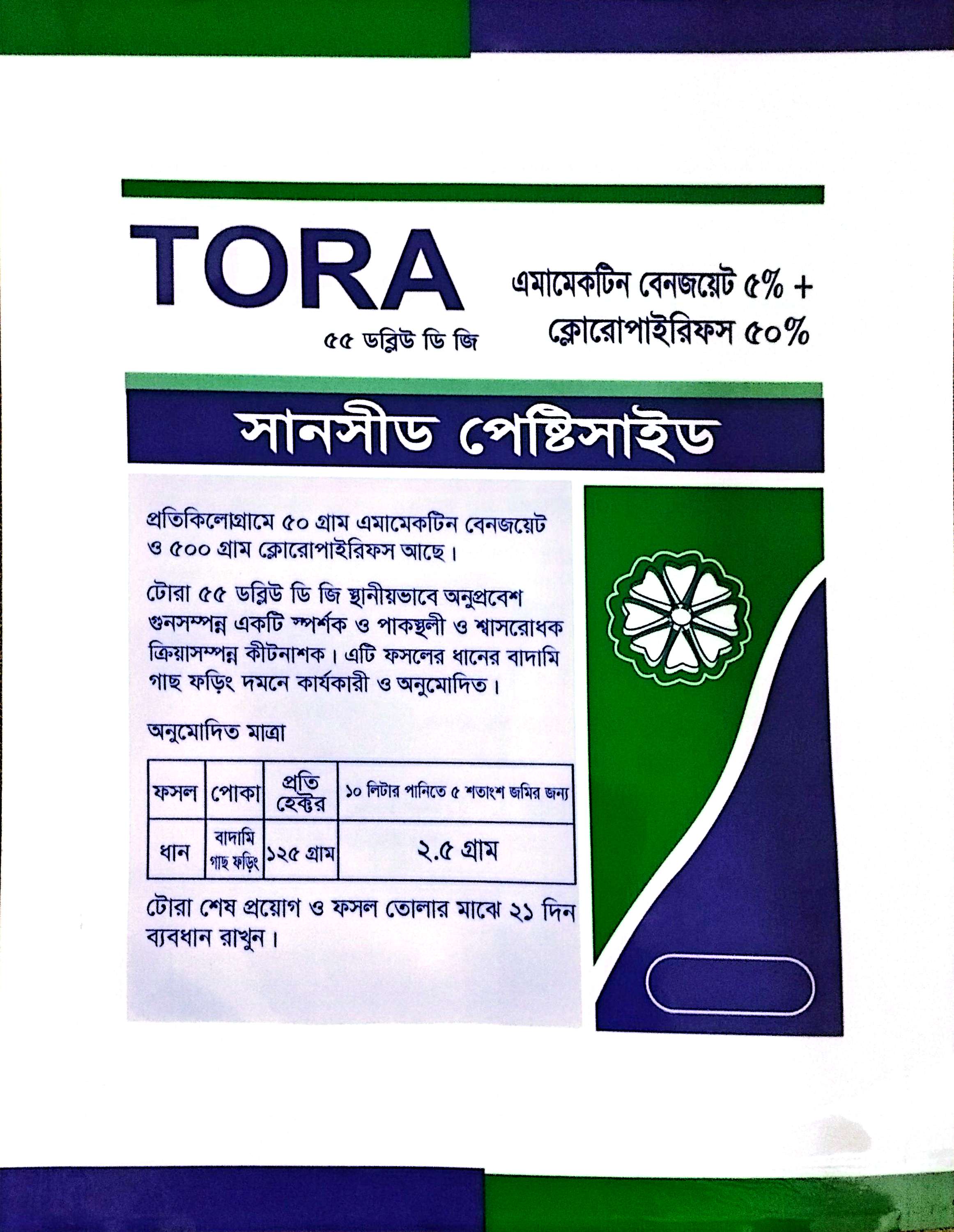 টোরা-৫৫ ডব্লিউ জি ফসলের জমিতে স্প্রে করার পর ১৭-২১ দিন ফসল খাবেন না বা ব্যাবহার করনে না।