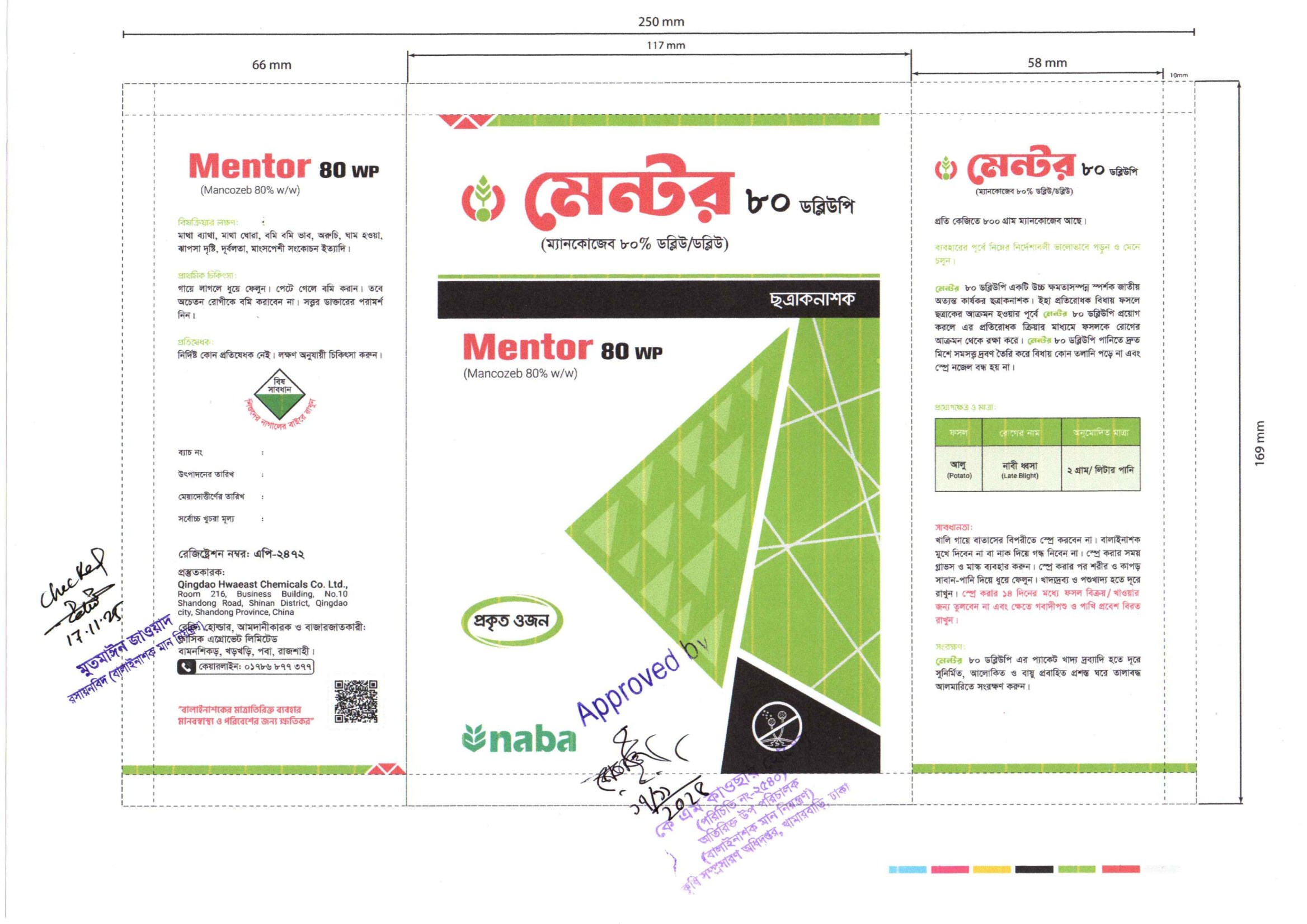 লেবেলে বর্ণিত ফসলের বালাই দমনে মেন্টর ৮০ ডব্লিউপি কার্যকরী ও অনুমোদিত।
