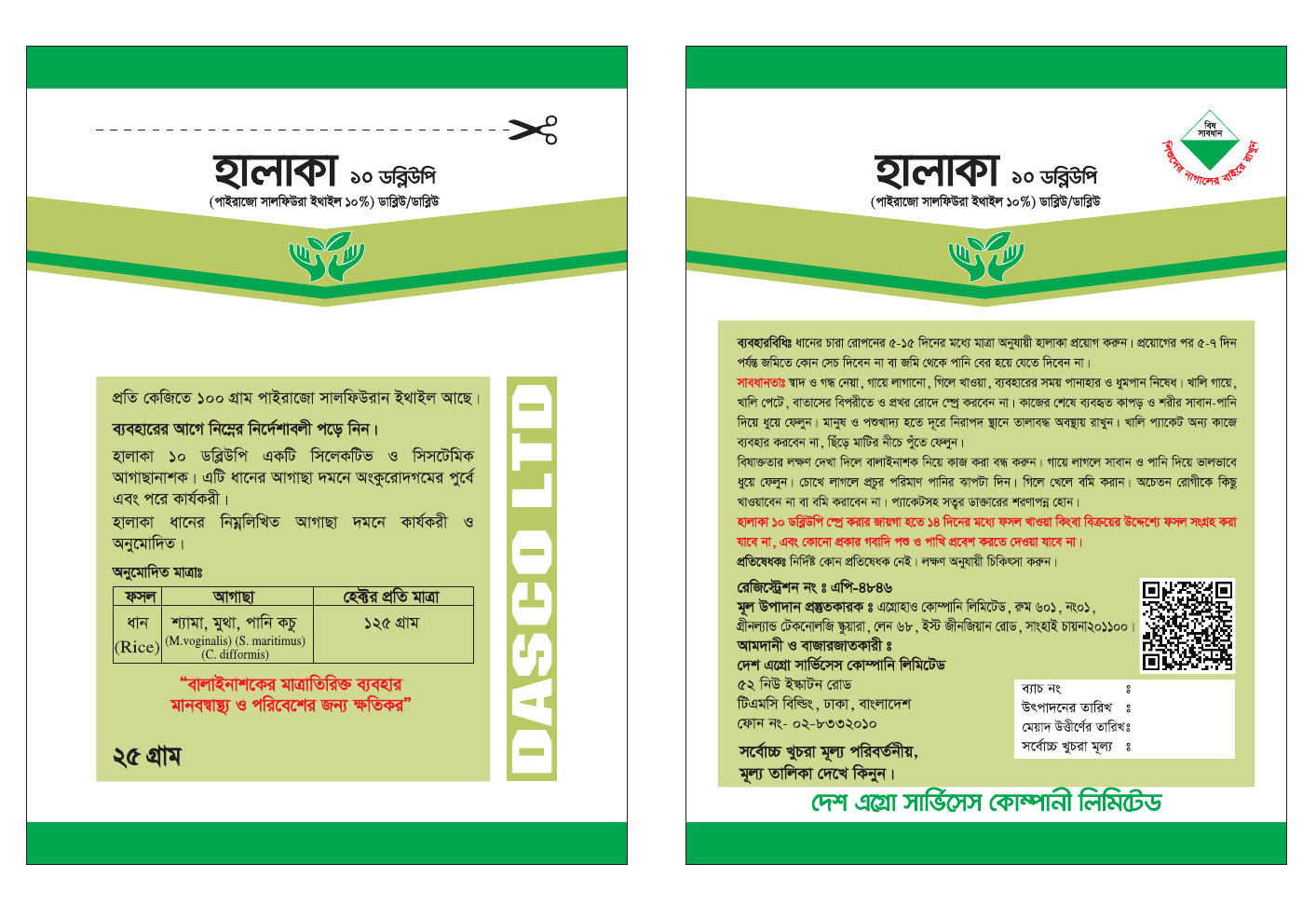 হালাকা ১০ ডাব্লিউ পি একটি সিলেকটিভ ও সিস্টেমিক আগাছানাশক। এটি ধানের আগাছা দমনে অঙ্কুরোদ্গমের পূর্বে এবং পরে কার্যকরী