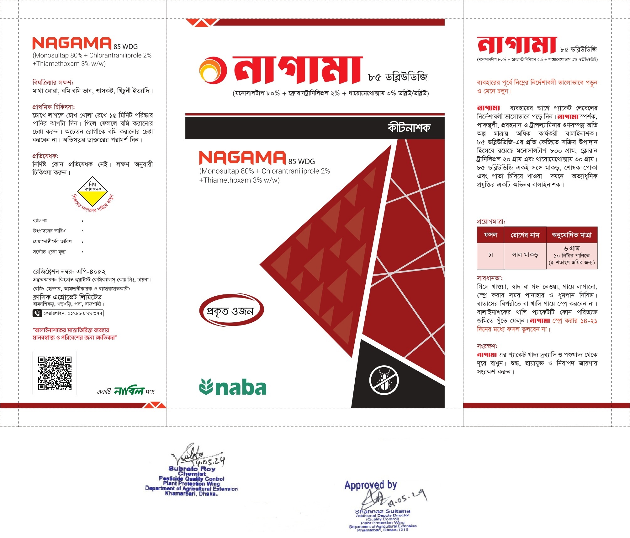 লেবেলে বর্ণিত ফসলের বালাই দমনে নাগামা কার্যকরী ও অনুমোদিত।