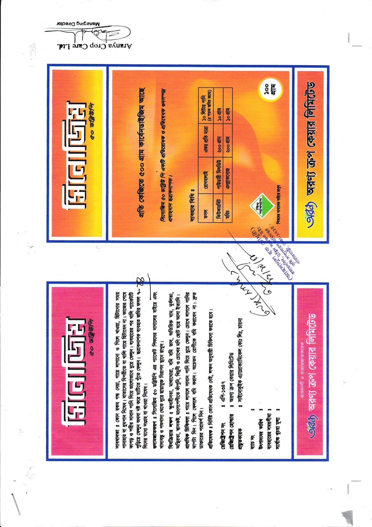 সিনোজিম ৫০ ডব্লিউ পি প্রয়োগের পর কমপক্ষে ১৪ দিন পর্যন্ত ফসল খাওয়া বা বিক্রয়ের জন্য তুলবেন না।