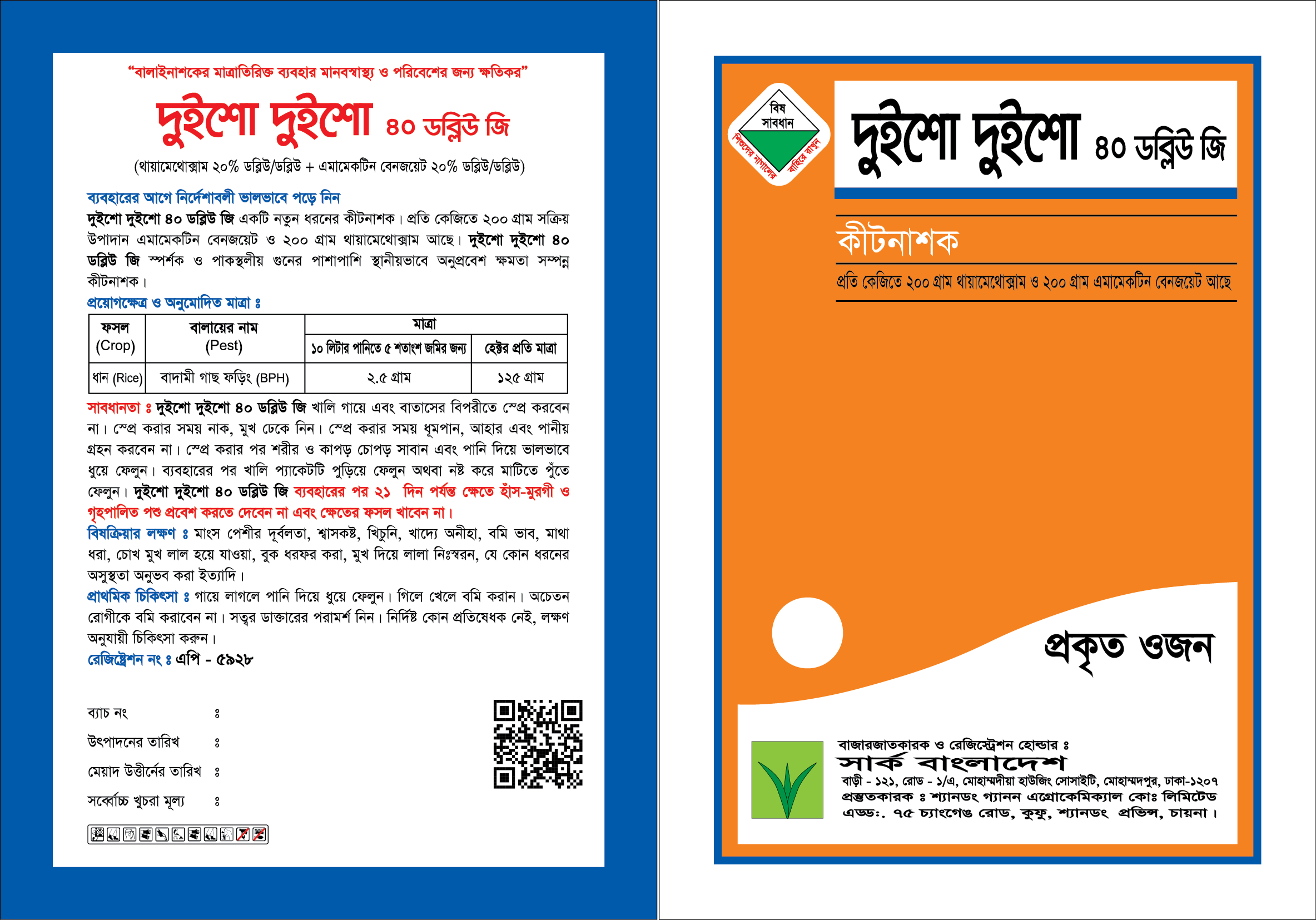 দুইশো দুইশো প্রতি কেজিতে ২০০ গ্রাম এমামেকটিন বেনজয়েট ও ২০০ গ্রাম থায়ামেথোক্সাম আছে।