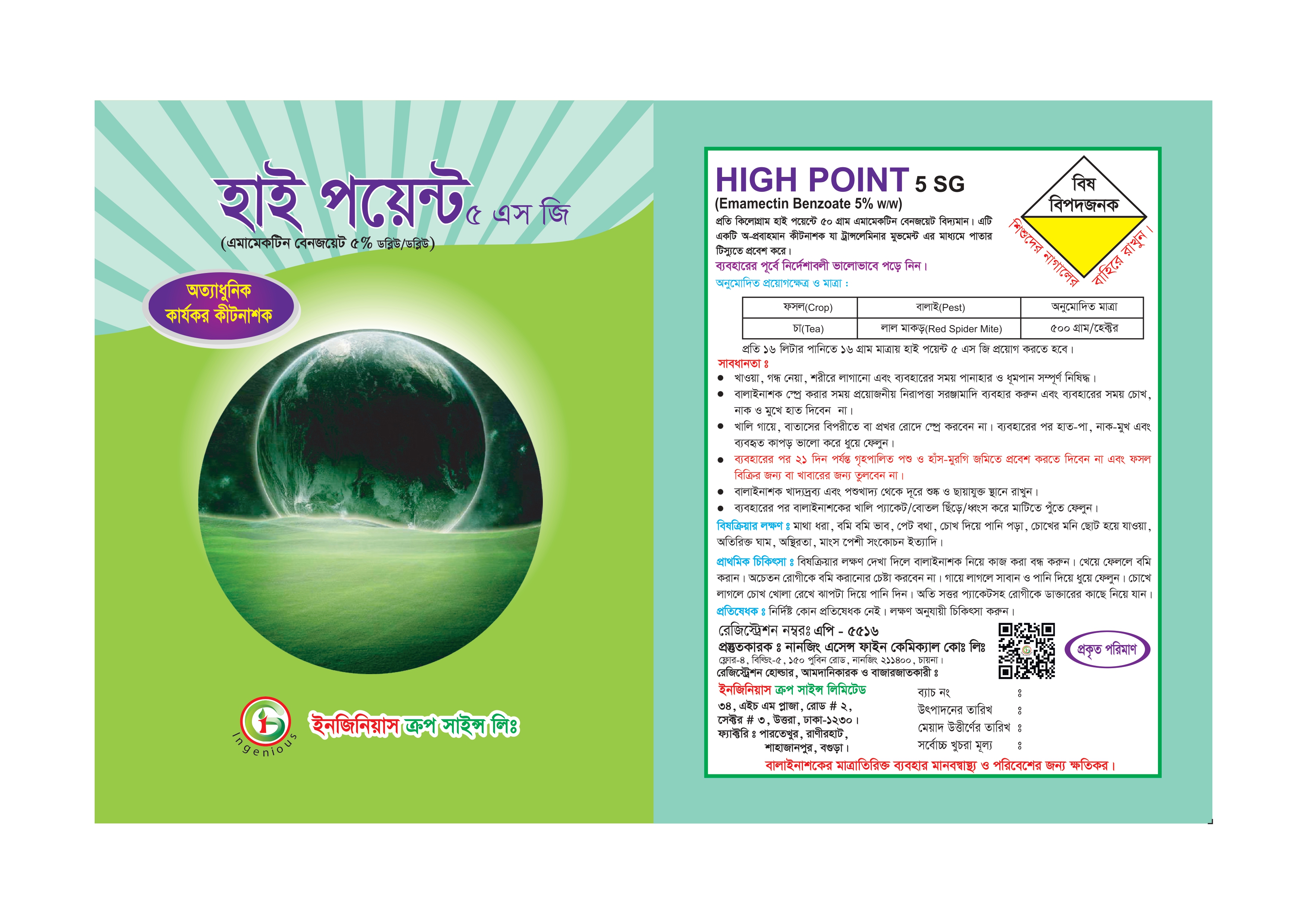 স্পর্শক, সিস্টেমিক ও প্রবাহমান গুণসম্পন্ন কীটনাশক যা পোকা মাকড়ের নার্ভাস সিস্টেমকে ধ্বংস করে ফসলের সুরক্ষা প্রদান করে।