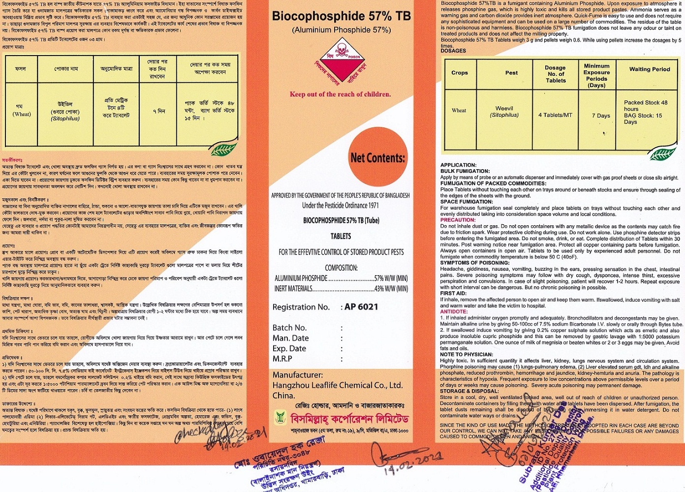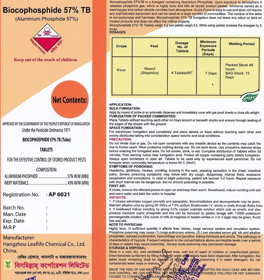 বিকোফসফাইড ৫৭% টিবি বাতাসের সংস্পর্শে বিষাক্ত ফসফিন গ্যাস তৈরি করে যা গুদামজাত মালপত্রের ক্ষতিকারক সকল পোকামাকড় ধ্বংস করে এবং অ্যামোনিয়ার গন্ধ বিপজ্জনক ও কার্বন ডাইঅক্সাইড আবহাওয়ায় নিষ্ক্রিয় প্রভাব সৃষ্টি করে। বিকোফসফাইড ৫৭% টিবি ব্যবহার করা এতটাই সহজ যে, এর জন্য আধুনিক কোন সরঞ্জামের প্রয়োজন হয় না। তাছাড়া গুদামজাত বিপুল পরিমাণ মালপত্র সুরক্ষায় এর ব্যবহার বিশেষভাবে কার্যকরী। এই ট্যাবলেটের কার্য শেষের প্রভাব বিষাক্ত বা বিপজ্জনক নয়। বিকোফসফাইড ৫৭% টিবি বাষ্প প্রয়োগ করা মালপত্রে কোন রকম দূর্গন্ধ বা ক্ষতিকারক প্রভাব ফেলেনা।