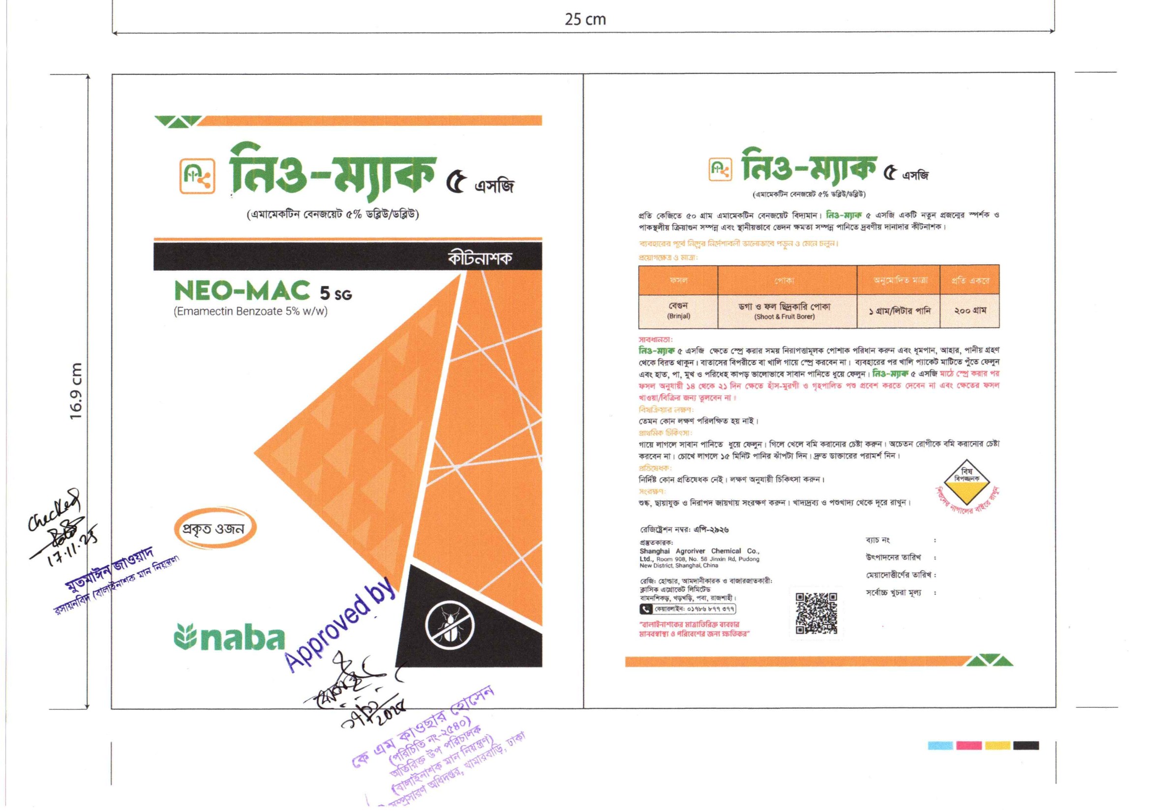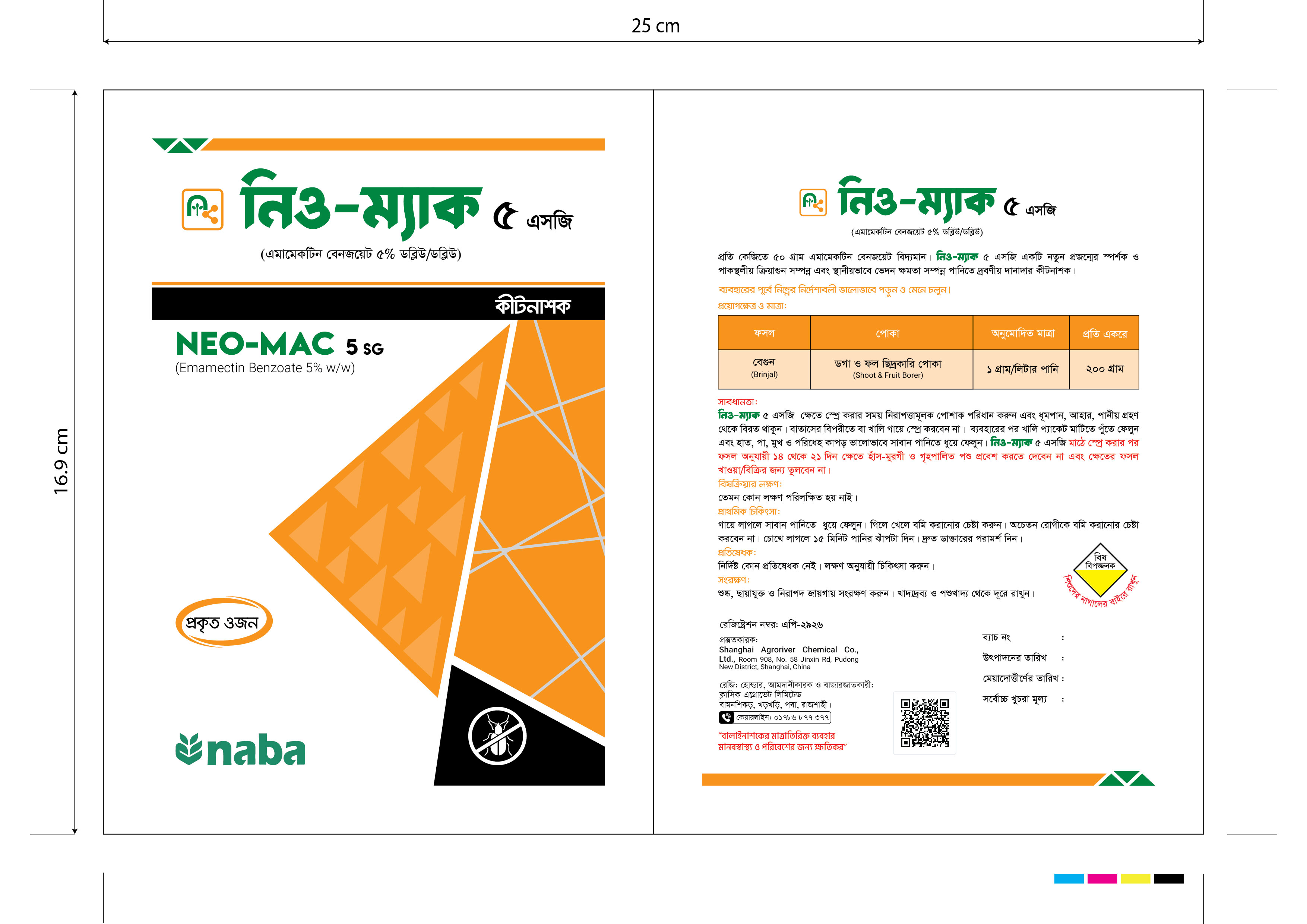 লেবেলে বর্ণিত ফসলের বালাই দমনে নিও-ম্যাক ৫ এসজি কার্যকরী ও অনুমোদিত।