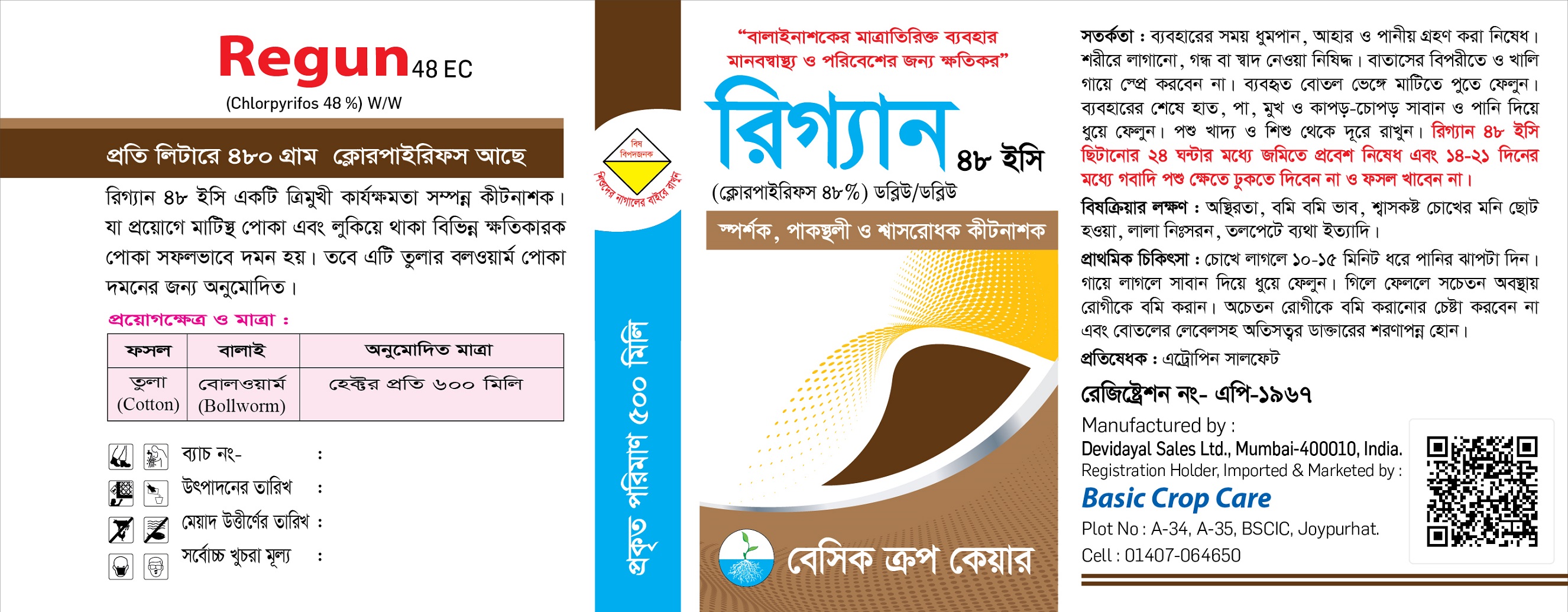 রিগ্যান ৪৮ ইসি একটি ত্রিমুখী কার্যক্ষমতা সম্পন্ন কীটনাশক। এটি প্রয়োগে মাটিস্থ পোকা এবং লুকিয়ে থাকা বিভিন্ন ক্ষতিকারক পোকা সফলভাবে দমন হয়।