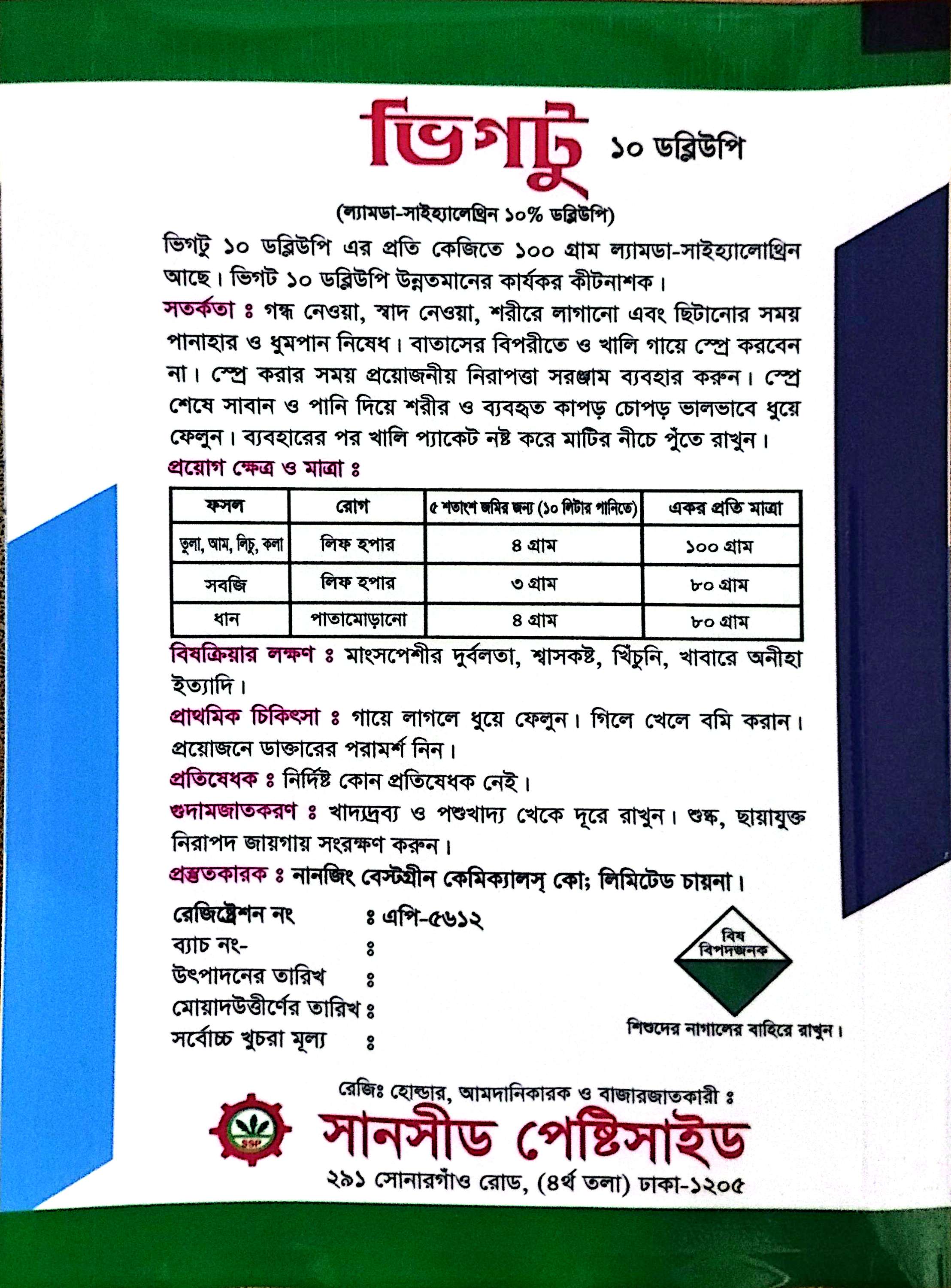 ভিগটু- ১০ ডব্লিউ পি তুলা, আম, লিচু, কলা এর লিফহপার পোকা দমনে ও ধান এর পাতামোড়ান পোকা দমনে অত্যন্ত কার্যকর।