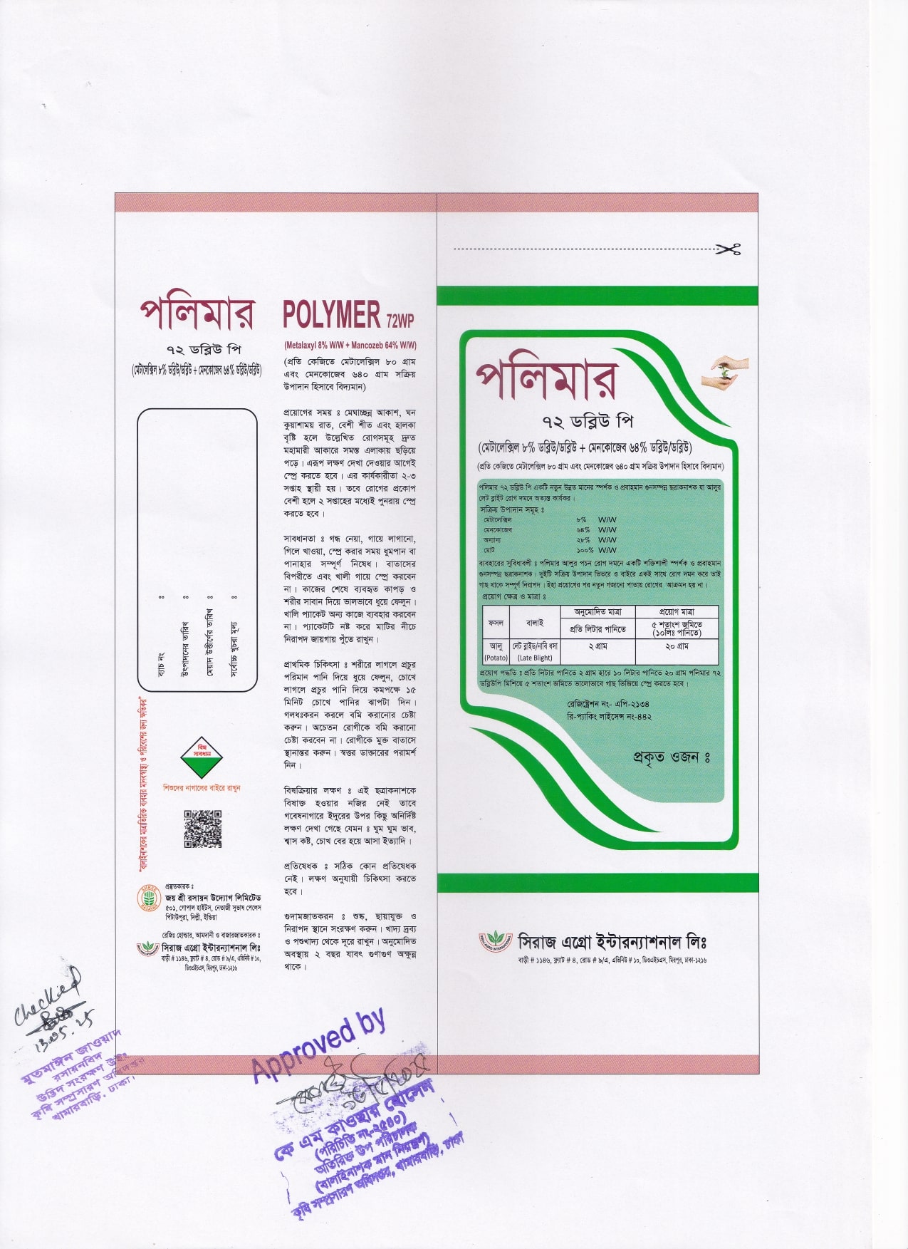 প্রতি লিটার পানিতে ২ গ্রাম করে পলিমার ৭২ ডব্লিউপি ১০ লিটার পানিতে ২০ গ্রাম মিশিয়ে স্প্রে করতে হবে।