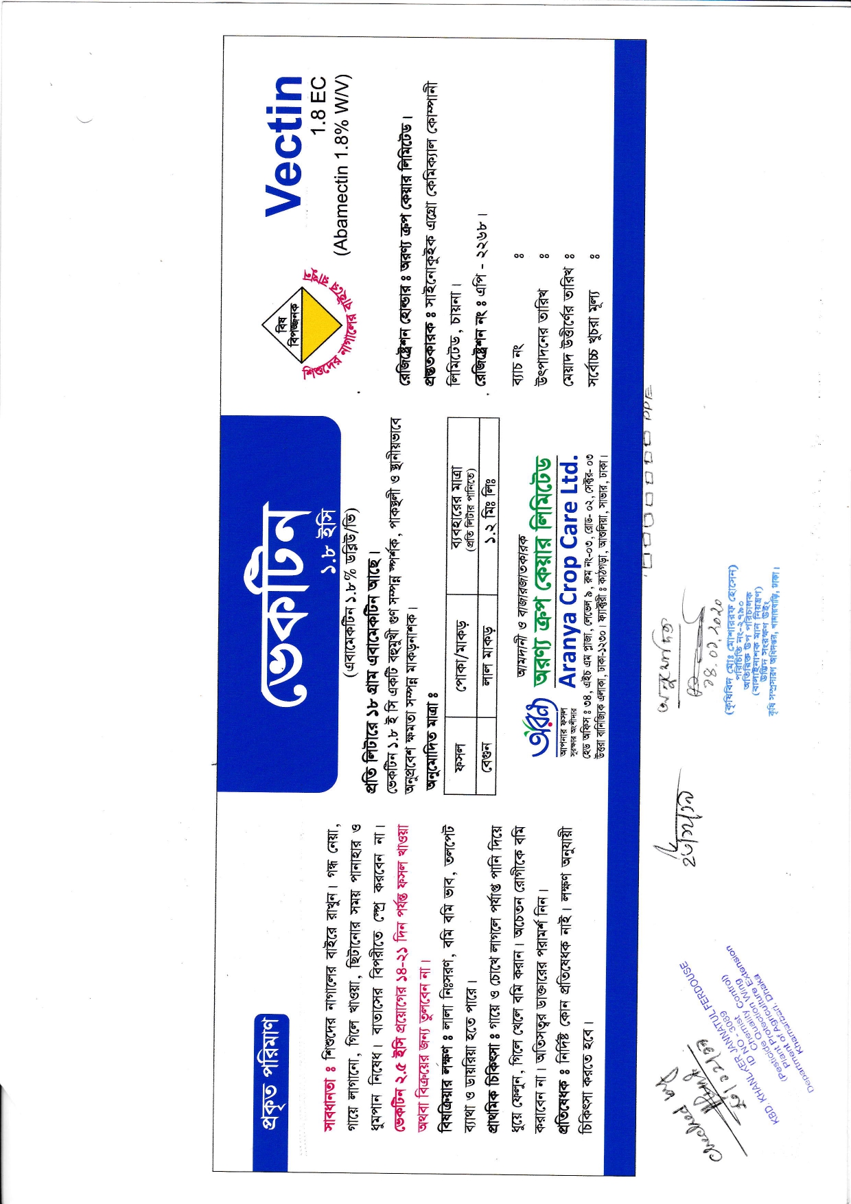 ভেকটিন 1.8 ই সি প্রয়োগের পর কমপক্ষে 14-21 দিন পর্যন্ত ফসল খাওয়া বা বিক্রয়ের জন্য তুলবেন না।