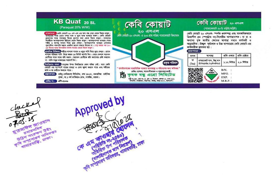 কেবি কোয়াট ২০ এসএল- স্পর্শক গুনসম্পন্ন এবং তাৎক্ষনিকভাবে ক্রিয়াশীল ব্রড স্পেকট্রাম নন্-সিলেক্টিভ আগাছানাশক। যা চাও অন্যান্য বৃক্ষ জাতীয় ক্ষেতের আগাছা দমনে কার্যকরী ও অনুমোদিত। উজ্জ্বল সূর্যলোক ও উচ্চ তাপমাত্রায় কেবি কোয়াট-এর কার্যকারীতা দ্রুততর হয়।