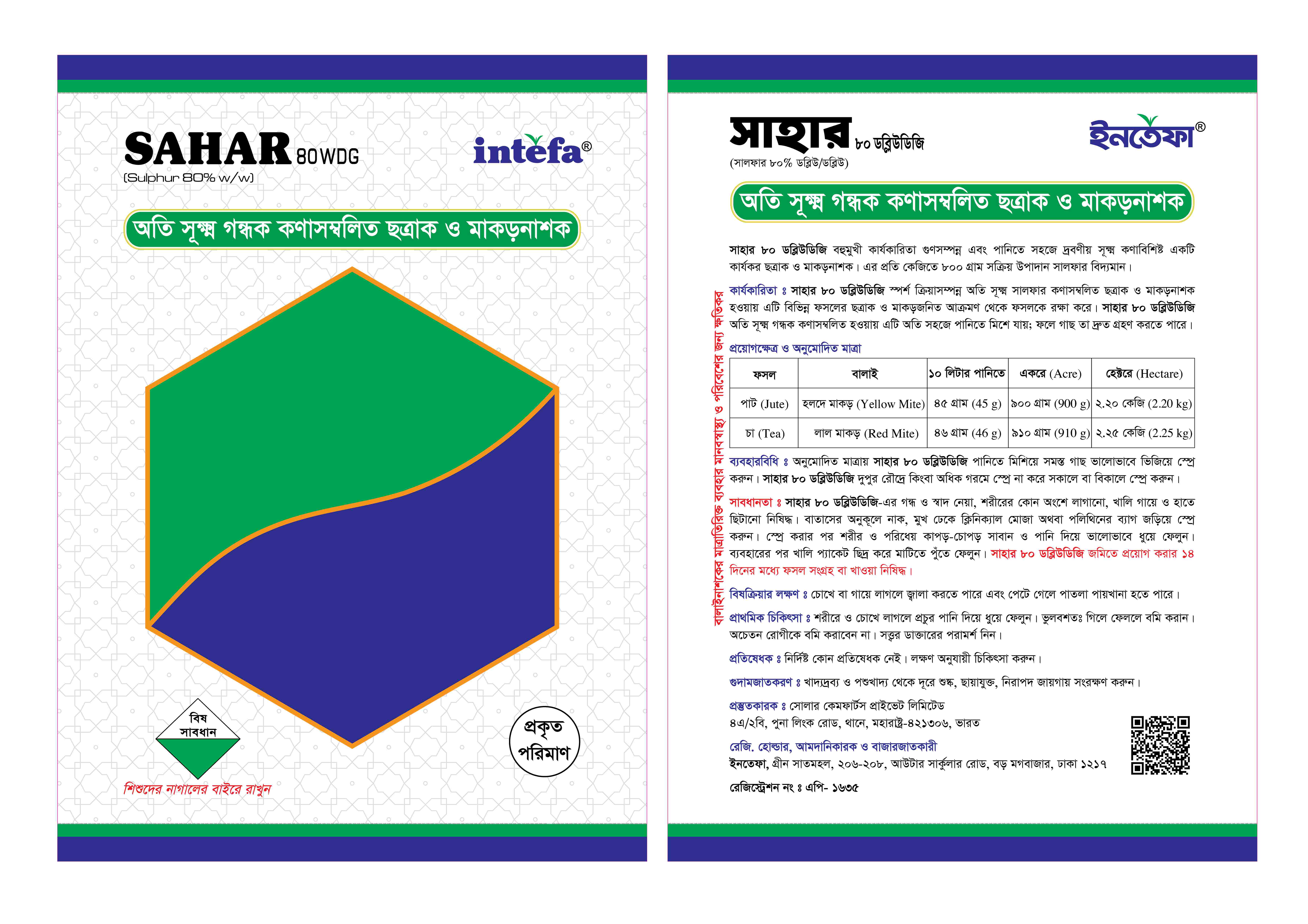 সাহার ৮০ ডব্লিউডিজি স্পর্শ ক্রিয়াসম্পন্ন অতি সূক্ষ্ম সালফার কণাসম্বলিত ছত্রাক ও মাকড়নাশক হওয়ায় এটি বিভিন্ন ফসলের ছত্রাক ও মাকড়জনিত আক্রমণ থেকে ফসলকে রক্ষা করে। সাহার ৮০ ডব্লিউডিজি অতি সূক্ষ্ম গন্ধক কণাসম্বলিত হওয়ায় এটি অতি সহজে পানিতে মিশে যায়; ফলে গাছ তা দ্রুত গ্রহণ করতে পারে।