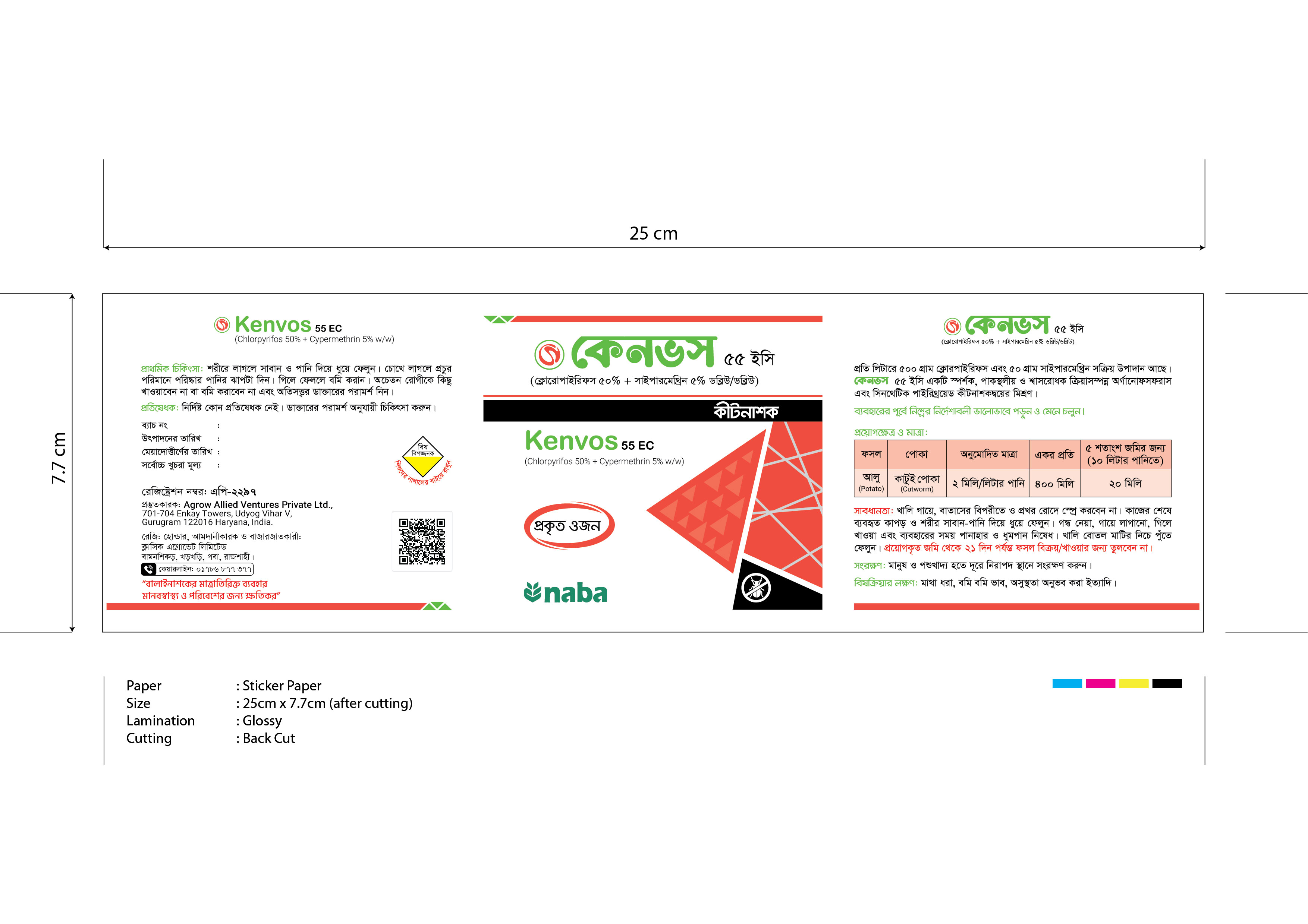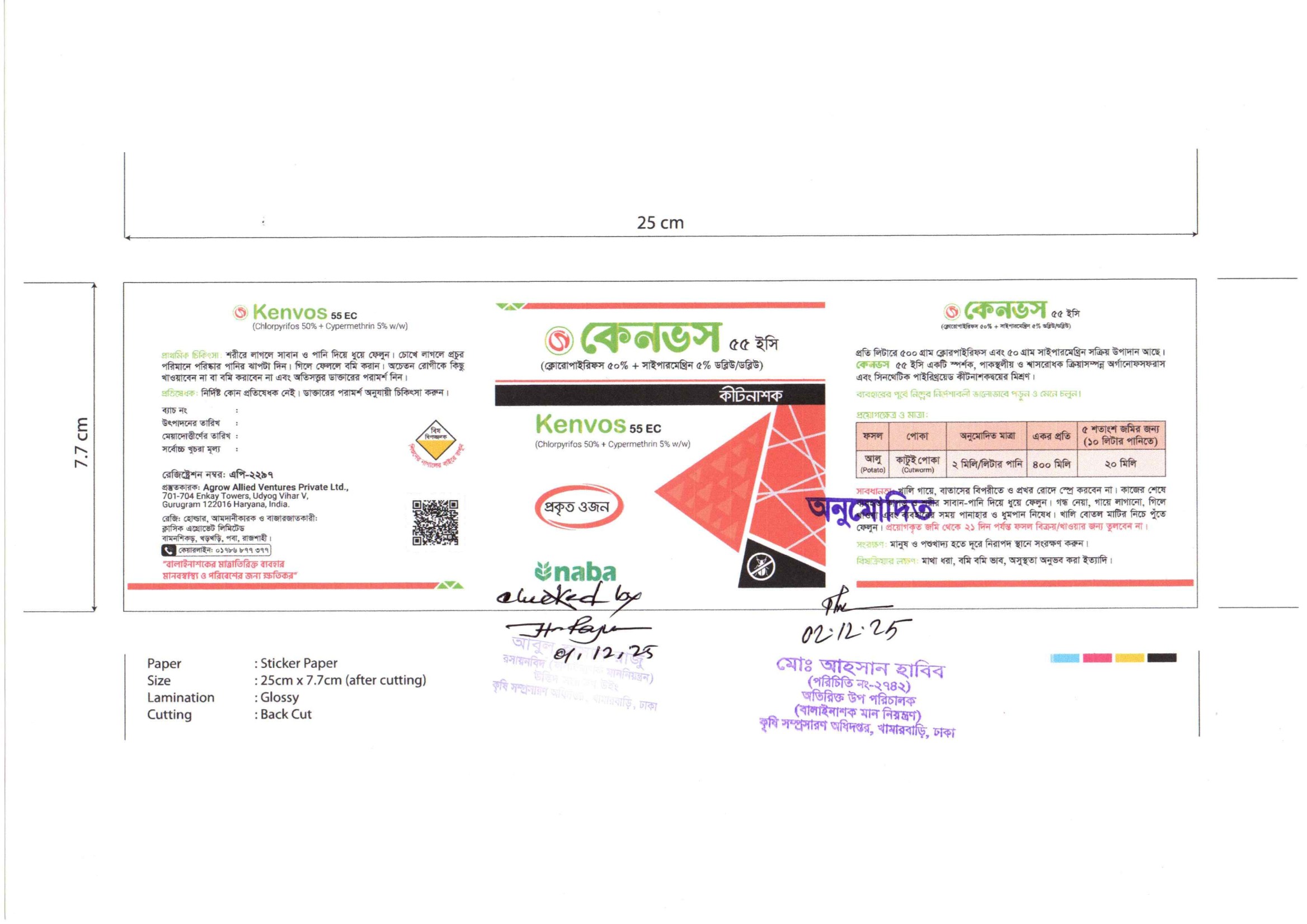 লেবেলে বর্ণিত ফসলের বালাই দমনে কেনভস ৫৫ ইসি কার্যকরী ও অনুমোদিত।