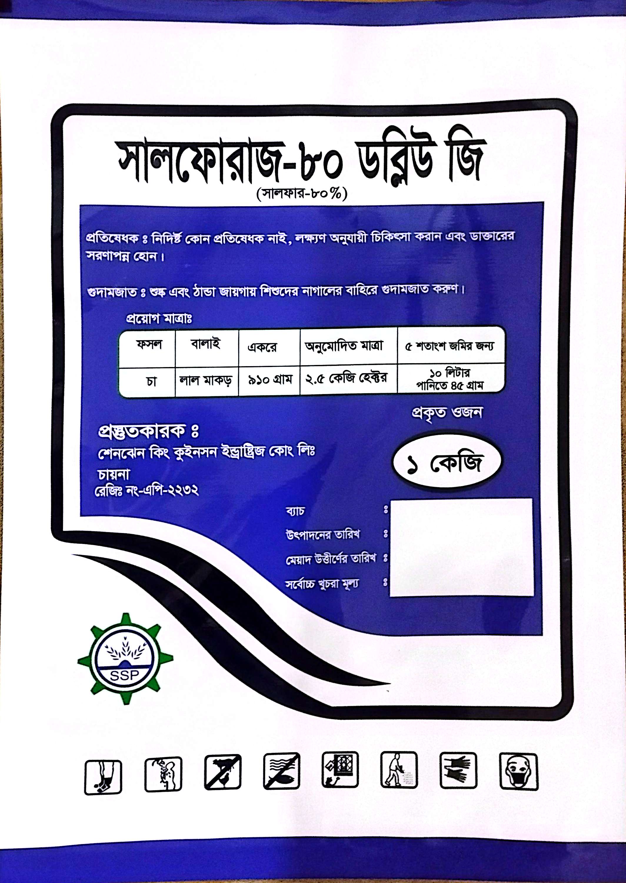 সালফোরাজ -৮০ ডব্লিউ জি চায়ের লাল মাকঢ় দমনে অধিক কার্যকরী ও অনুমোদিত । সালফোরাজ -৮০ ডব্লিউ জি একটি অতি সুক্ষ গন্ধক কণা সম্বলিত মাকরনাশক ।