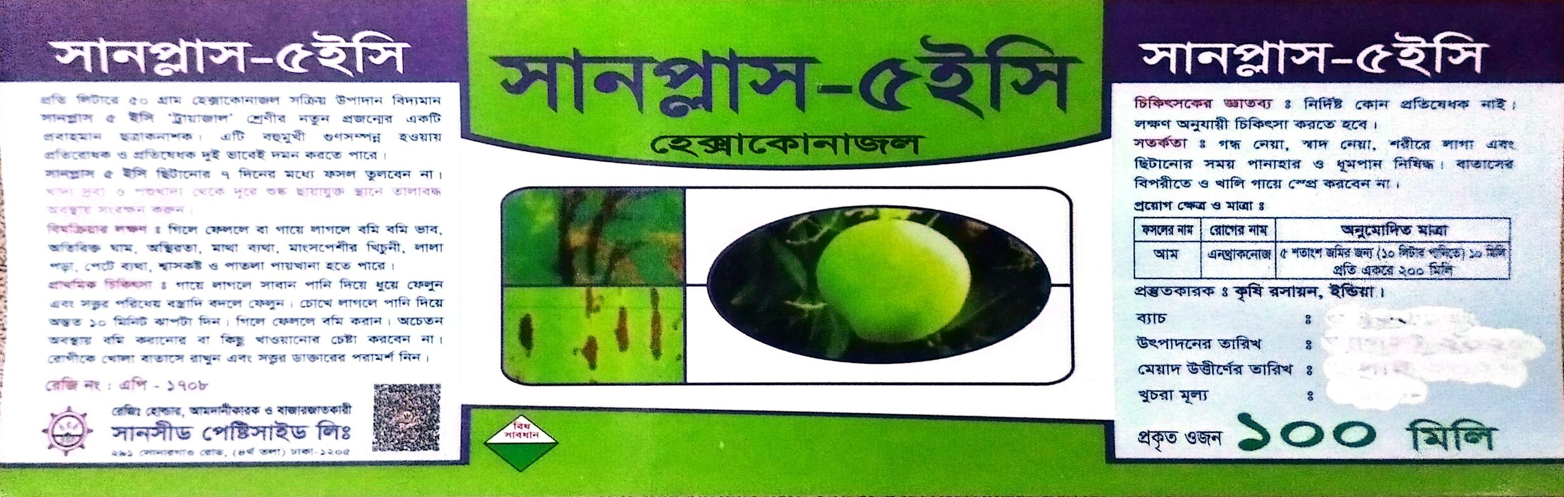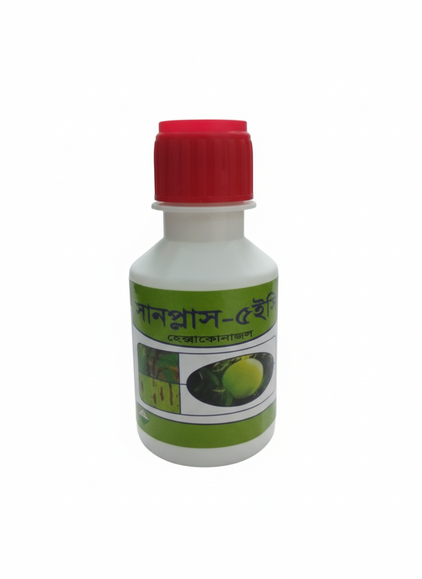 ১০ লিটার পানিতে ০৫ শতক জমির জন্য সানপ্লাস-৫ ইসি ১০ মিলি ভাল ভাবে মিশিয়ে স্প্রে করতে হবে।