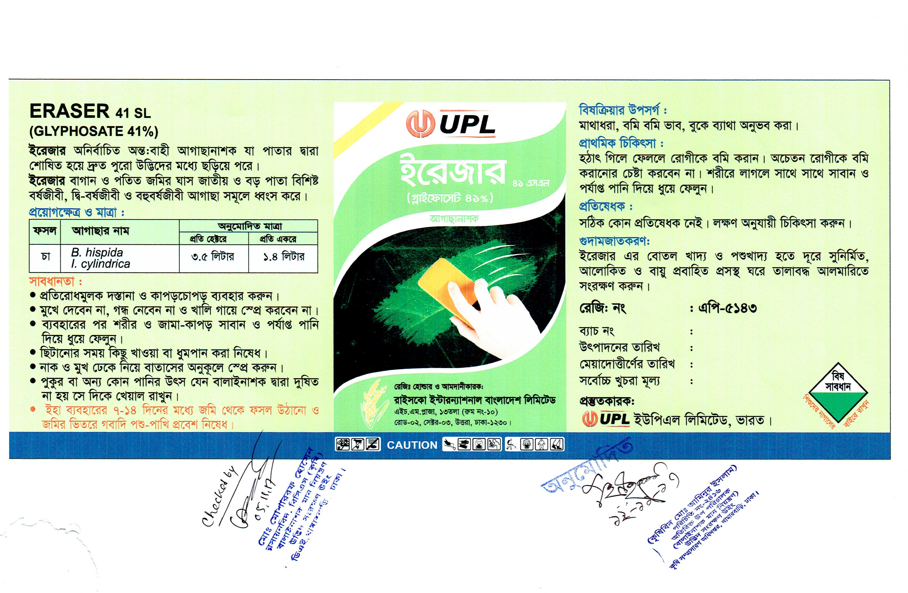 প্রতি হেক্টরে ৩.৫ লিটার অথবা প্রতি একরে ১.৪ লিটার অনুপাতে ব্যবহার করতে হবে।