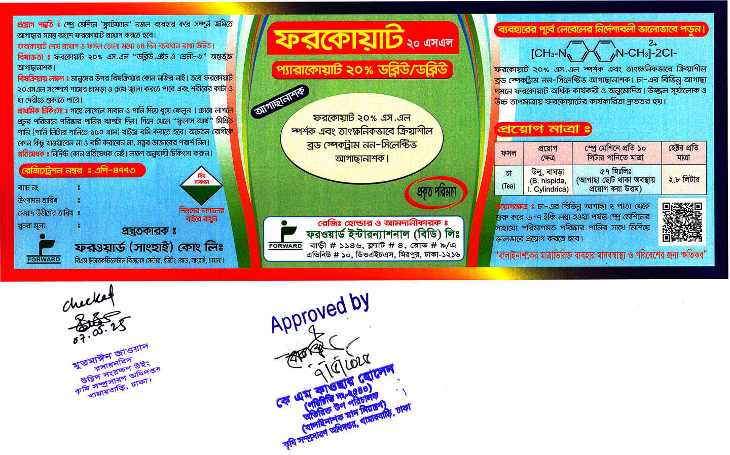 প্রতি ১০ লিটার পানিতে ৫৭ মিঃ লিঃ এবং হেক্টর প্রতি ২.৮ লিটার মাত্রায় প্রয়োগ করতে হবে।