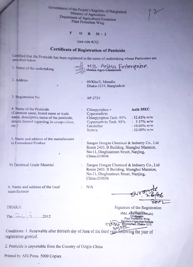 স্প্রে-করে বা সারের সাথে মিশিয়ে ছিটিয়ে দিতে হবে।