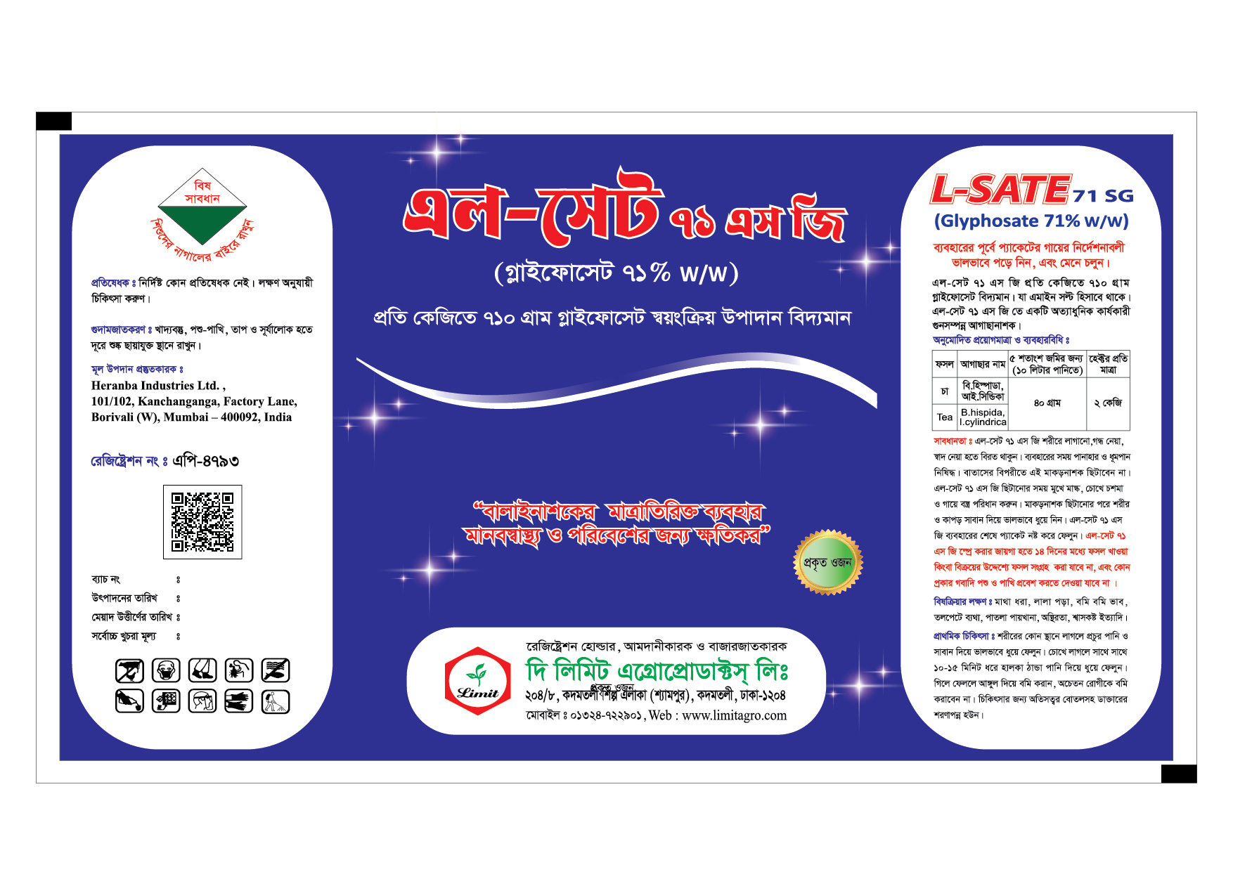এল-সেট ৭১ এস জি এর প্রতি কেজিতে ৭১০ গ্রাম গ্লাইফোসেট স্বয়ংক্রিয় উপাদান বিদ্যমান। এটি চা গাছের বি.হিস্পাডা, আই. সিন্ডিকা নামক আগাছা দমনে অধিক কার্যকরী।