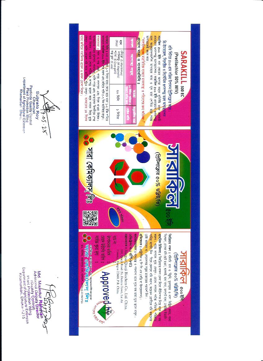 ফসল অনিস্টকারী বালাই অনুমদিত প্রয়োগ মাত্রা ধান (Rice) চেচড়া (S. maritimus), ১ লিটার/ হেক্টর পানি কচু (M. vaginalis), শ্যামা(E. crus-galli),বড় চুচা (C. iria ),