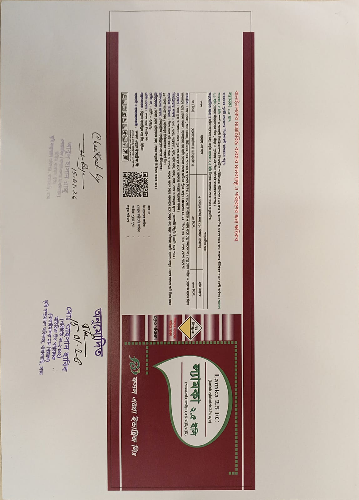 লেবেলে বর্ণিত ফসলের বালাই দমনে কার্যকরী ও অনুমোদিত।