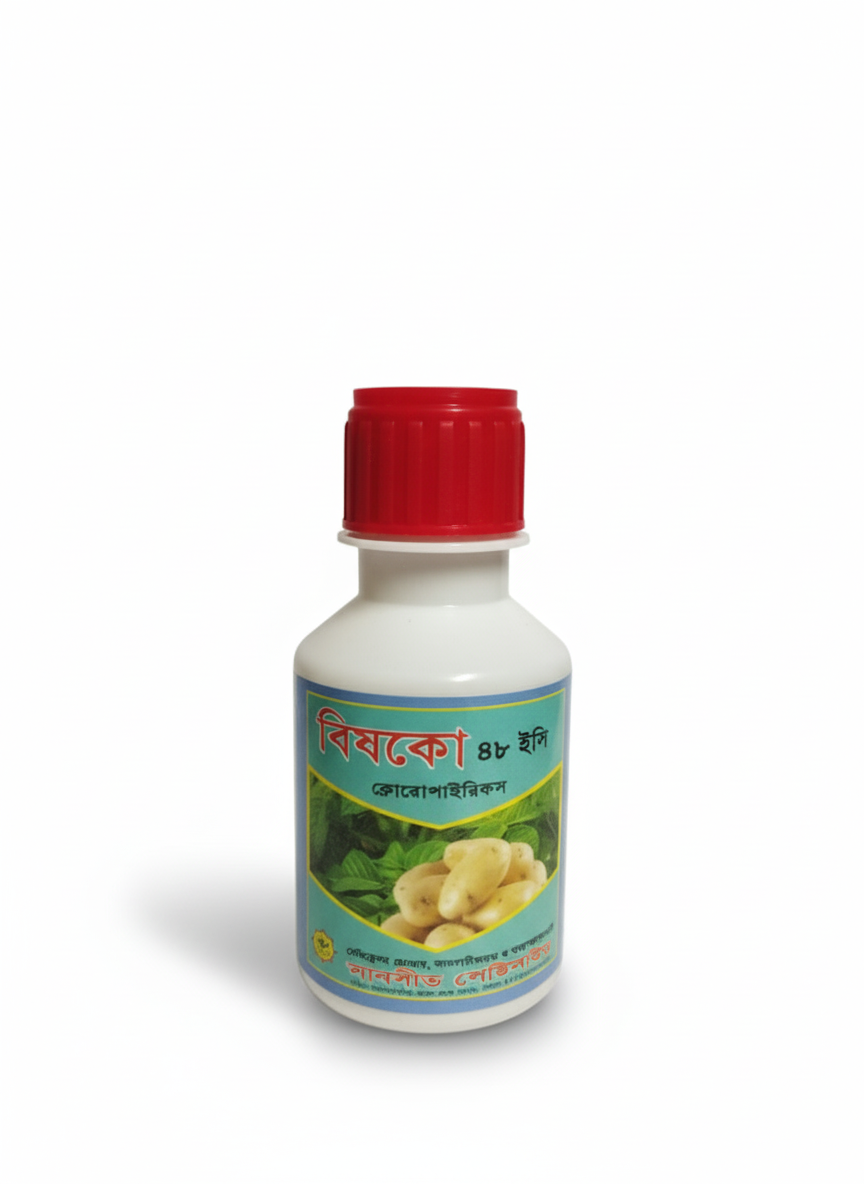 ১০ লিটার পানিতে ০৫ শতক জমির জন্য বিষকো-৪৮ ই সি ৩০ মিলি ভাল ভাবে মিশিয়ে স্প্রে করতে হবে।