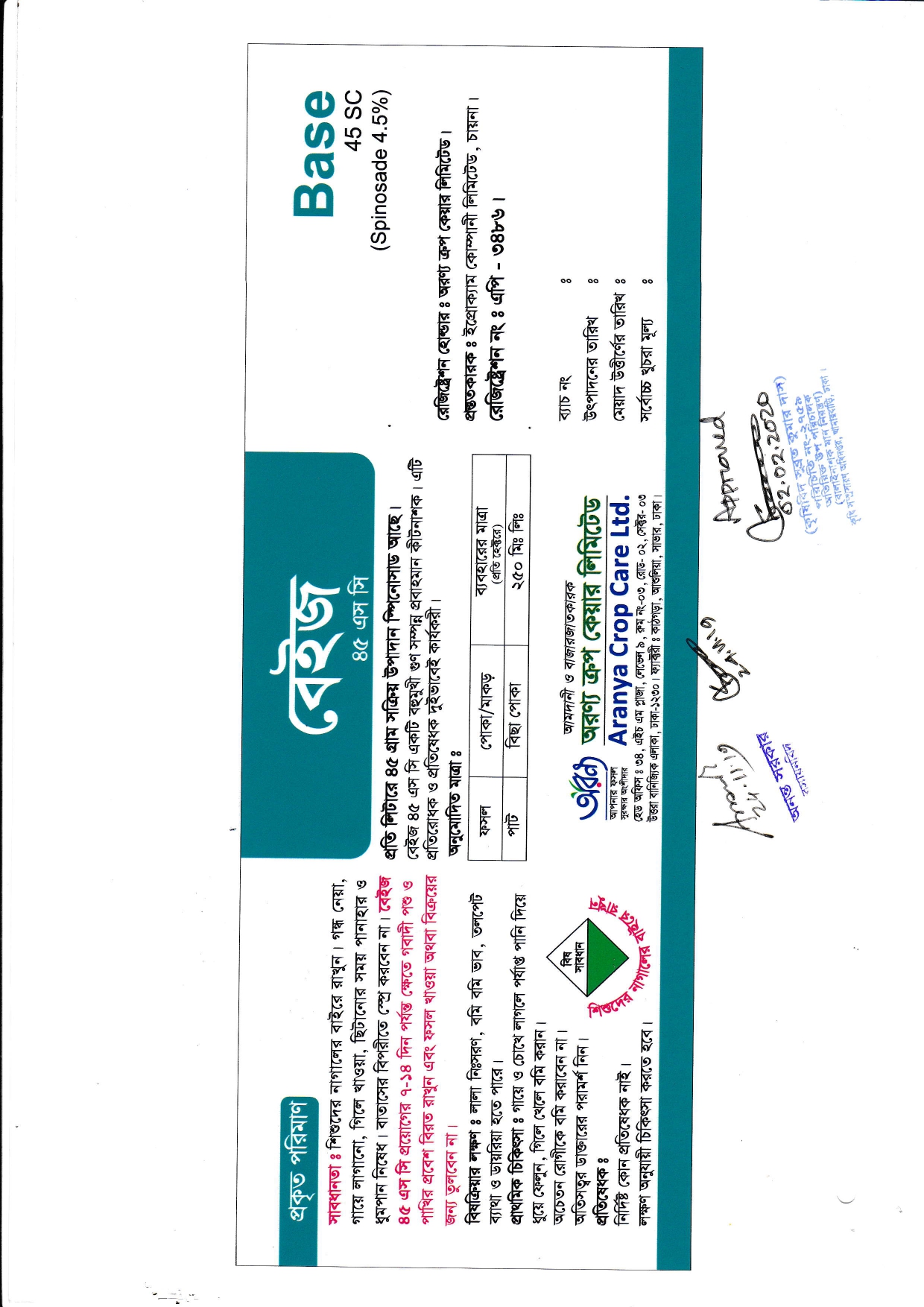 বেইজ 45 এস সি প্রয়োগের 7-14 দিন র্পযন্ত ক্ষেতে গবাদী পশু ও পাখির প্রবেশ বিরত রাখুন এবং ফসল খাওয়া বা বিক্রয়ের জন্য তুলবেন না।
