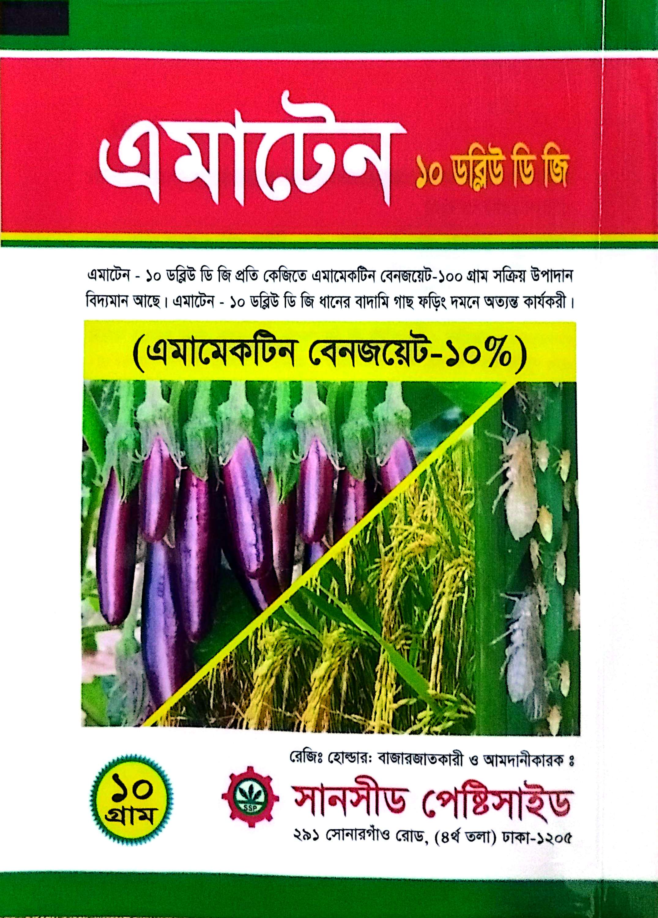 এমাটেন-১০ ডব্লিউ ডি জি ফসলের ধানের বাদমী গাছ ফড়িং দমনে কার্যকরী ও অনুমোদিত ।