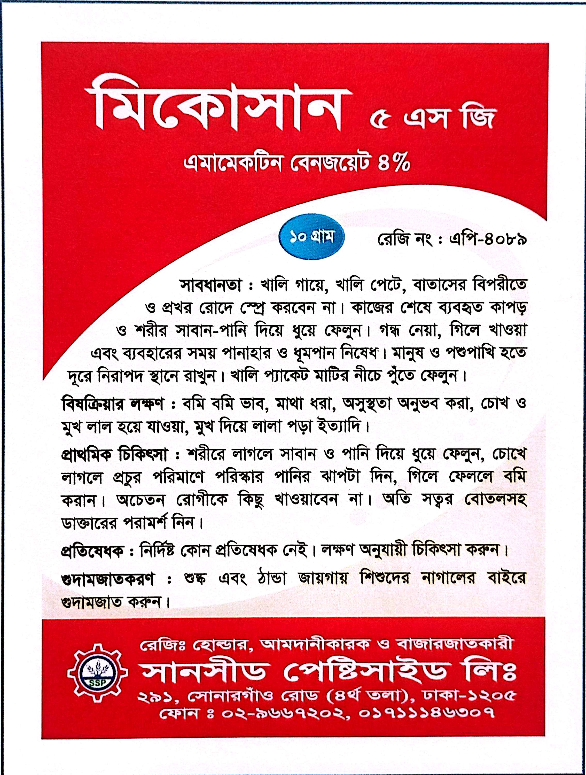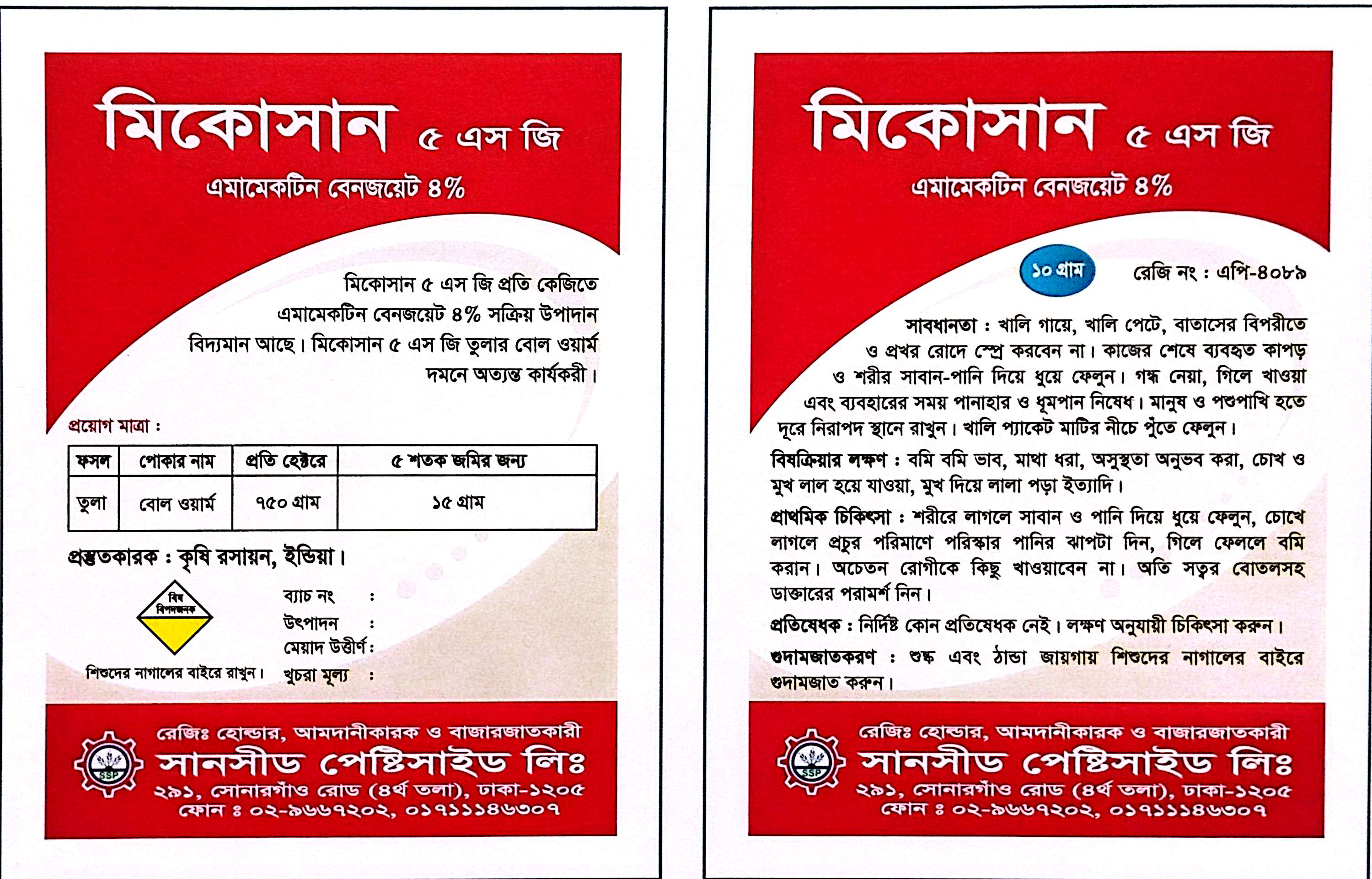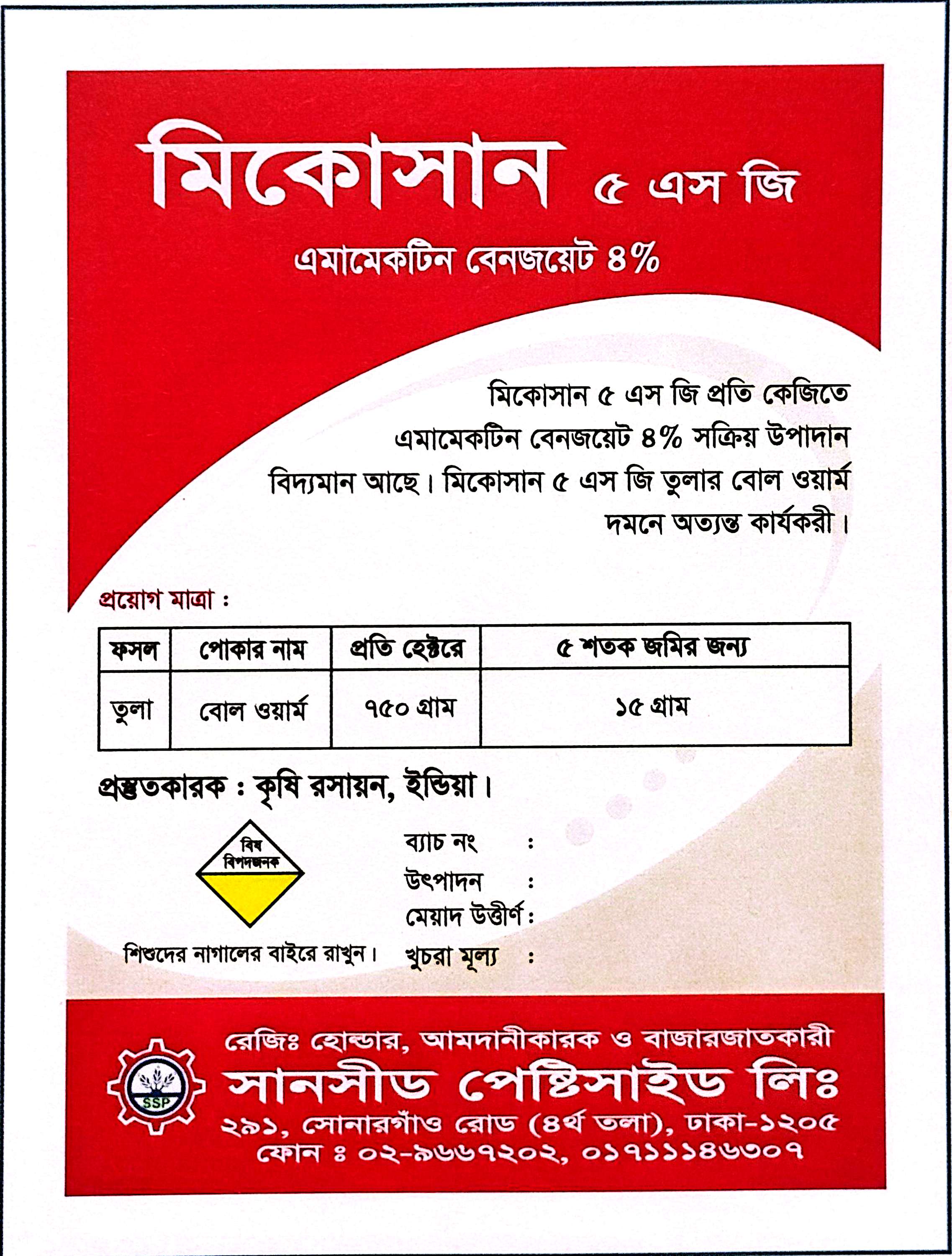 মিকোসান-৫ এস জি তুলার বোলওর্য়াম দমনে অধিক কার্যকরী ও অনুমোদিত ।
